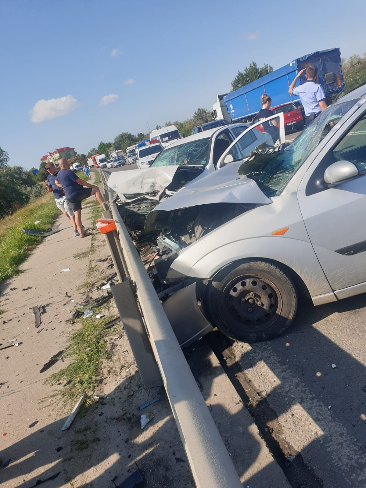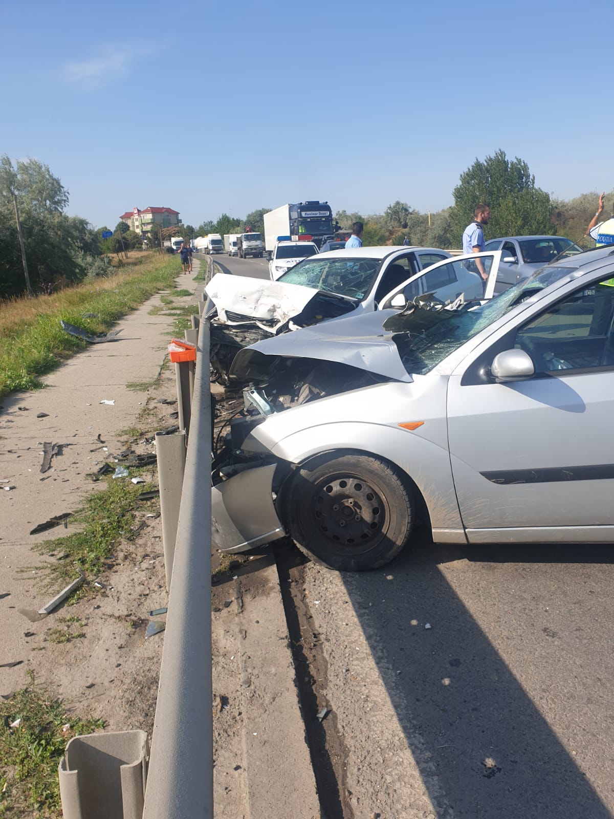 În urma impactului, primul autoturism a fost proiectat pe sensul opus de mers unde a lovit frontal o mașină condusă de un bărbat de 46 de ani, din sens opus, pe banda numărul 2.