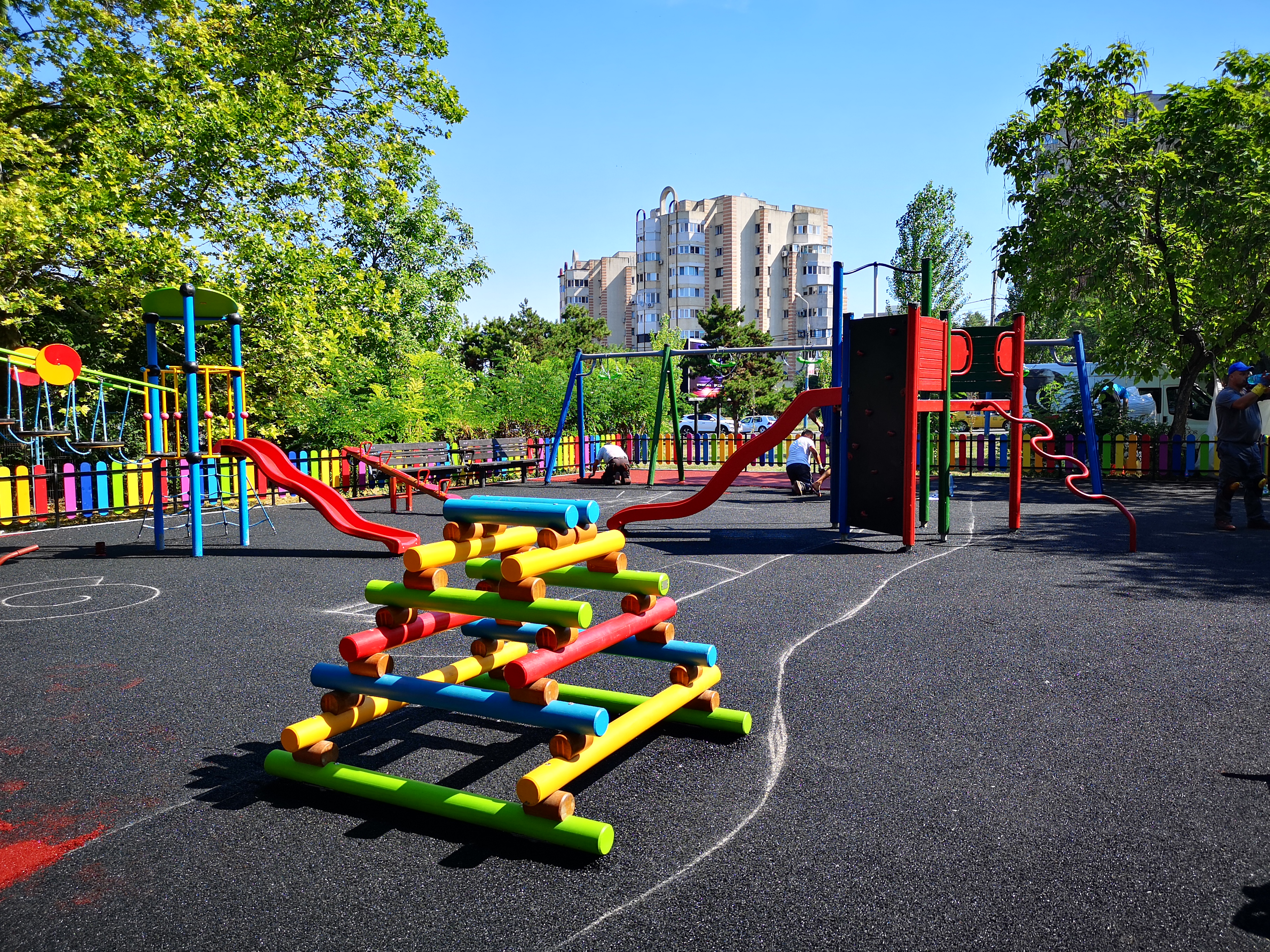 În tot acest timp, pe strada Traian, bl A4-A5, se lucrează la reabilitarea parapetului care înconjoară spațiul de joacă, iar la cel de pe strada Constantin Brâncuși se amenajează infrastructura. Totodată, la locurile destinate celor mici de pe strada B.P. Hașdeu bl L3-L4 și L7-L8 se montează echipamentele. Pe măsură ce lucrările se vor finaliza în toate aceste spații se va începe turnarea covorului antitraumă, multistrat.