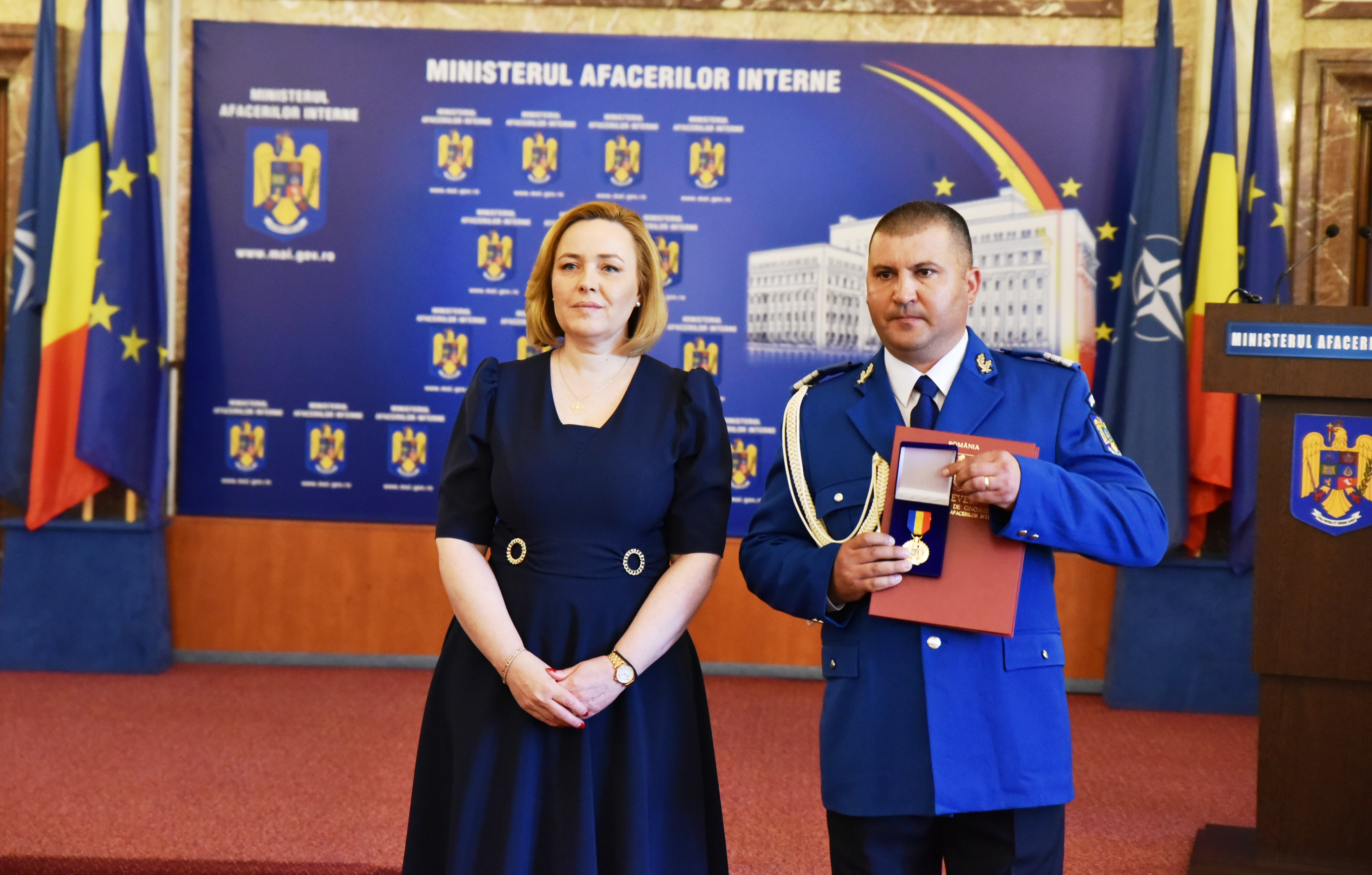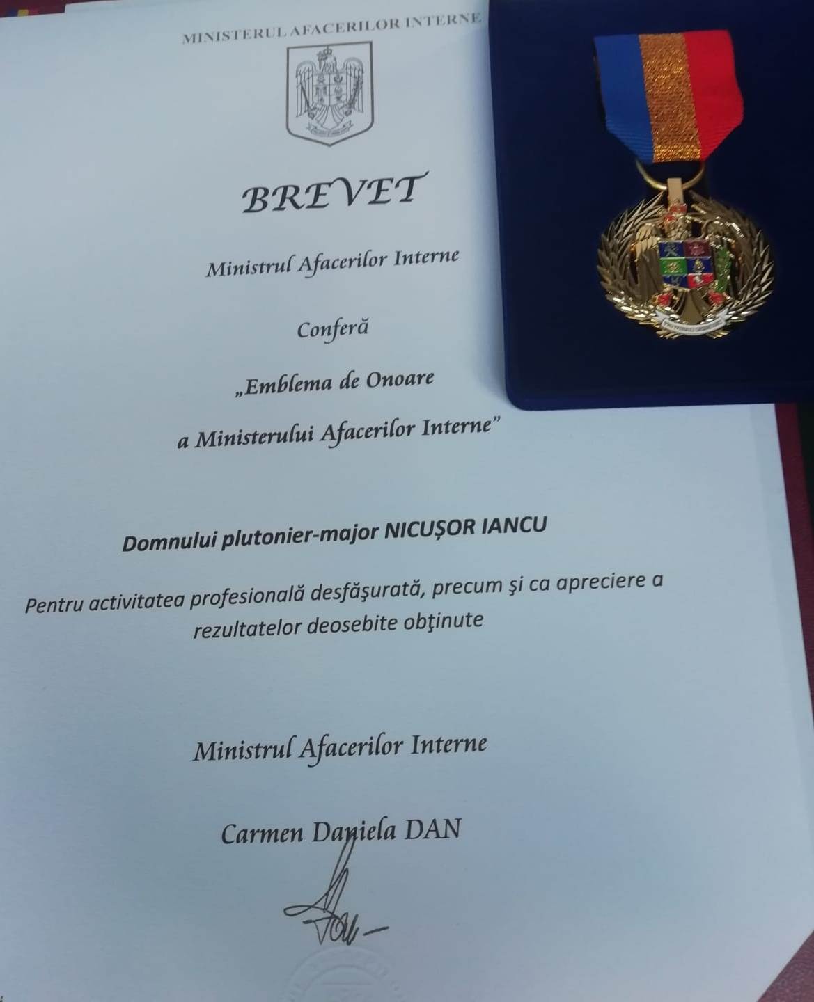 În acest an, peste 40 de agenți de poliție/ subofițeri și ofițeri din cadrul Poliției Române, Poliției de Frontieră Române, Jandarmeriei Române, Inspectoratului General al Aviației și Inspectoratului General pentru Situații de Urgență au primit Emblema de onoare a ministerului.