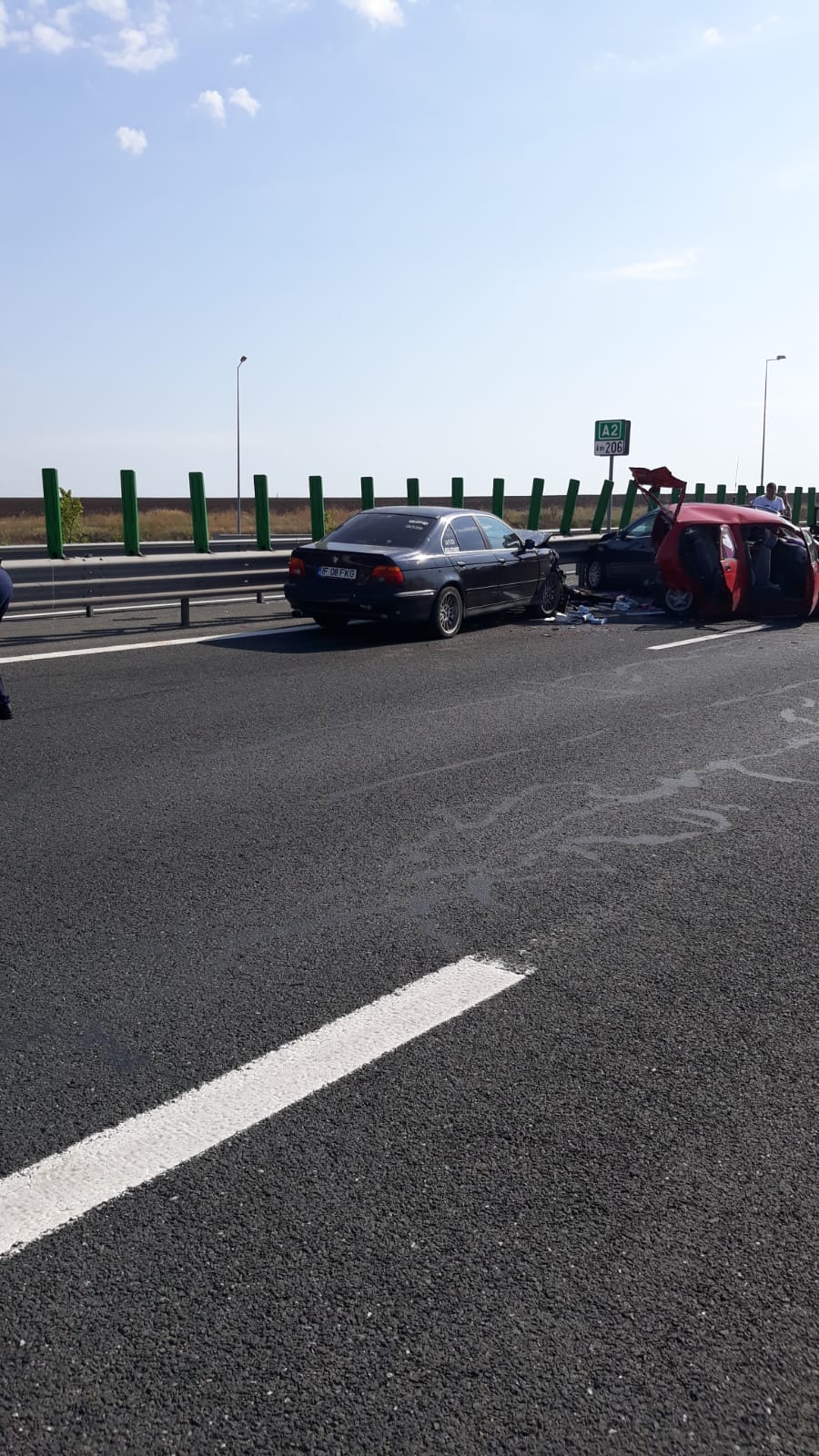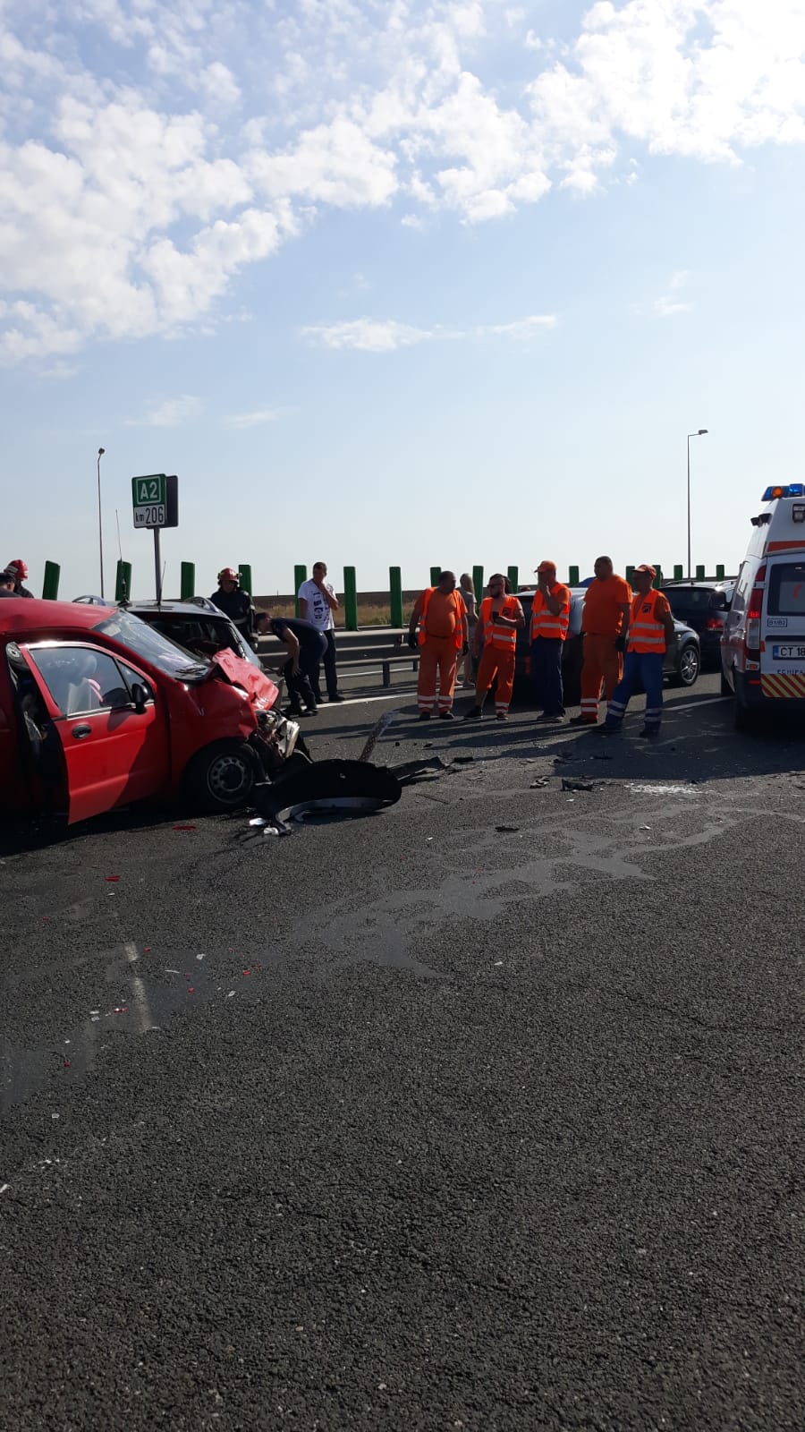 CONSTANȚA/FOTO: Accident rutier în lanț pe A2. Patru persoane au fost rănite