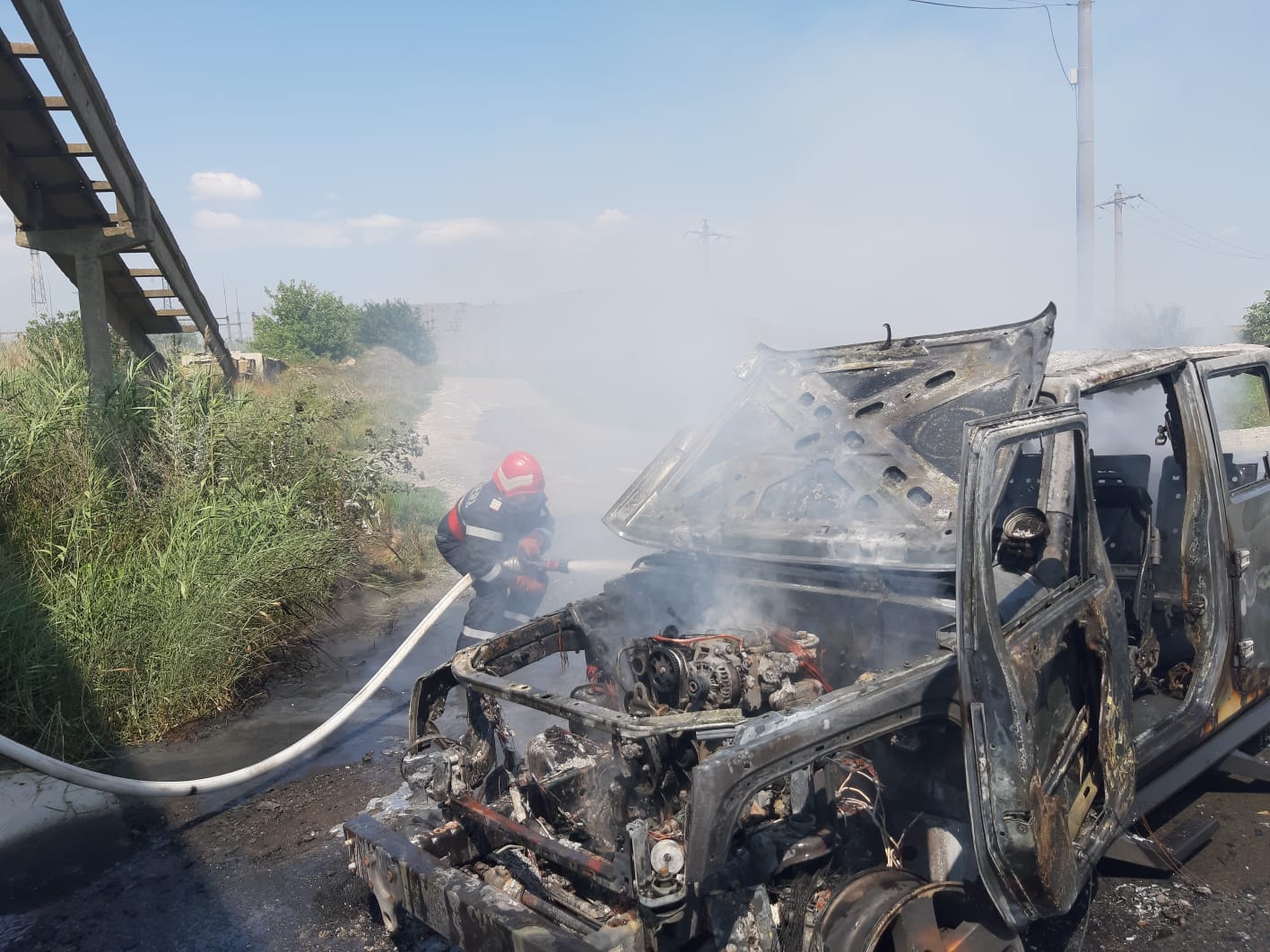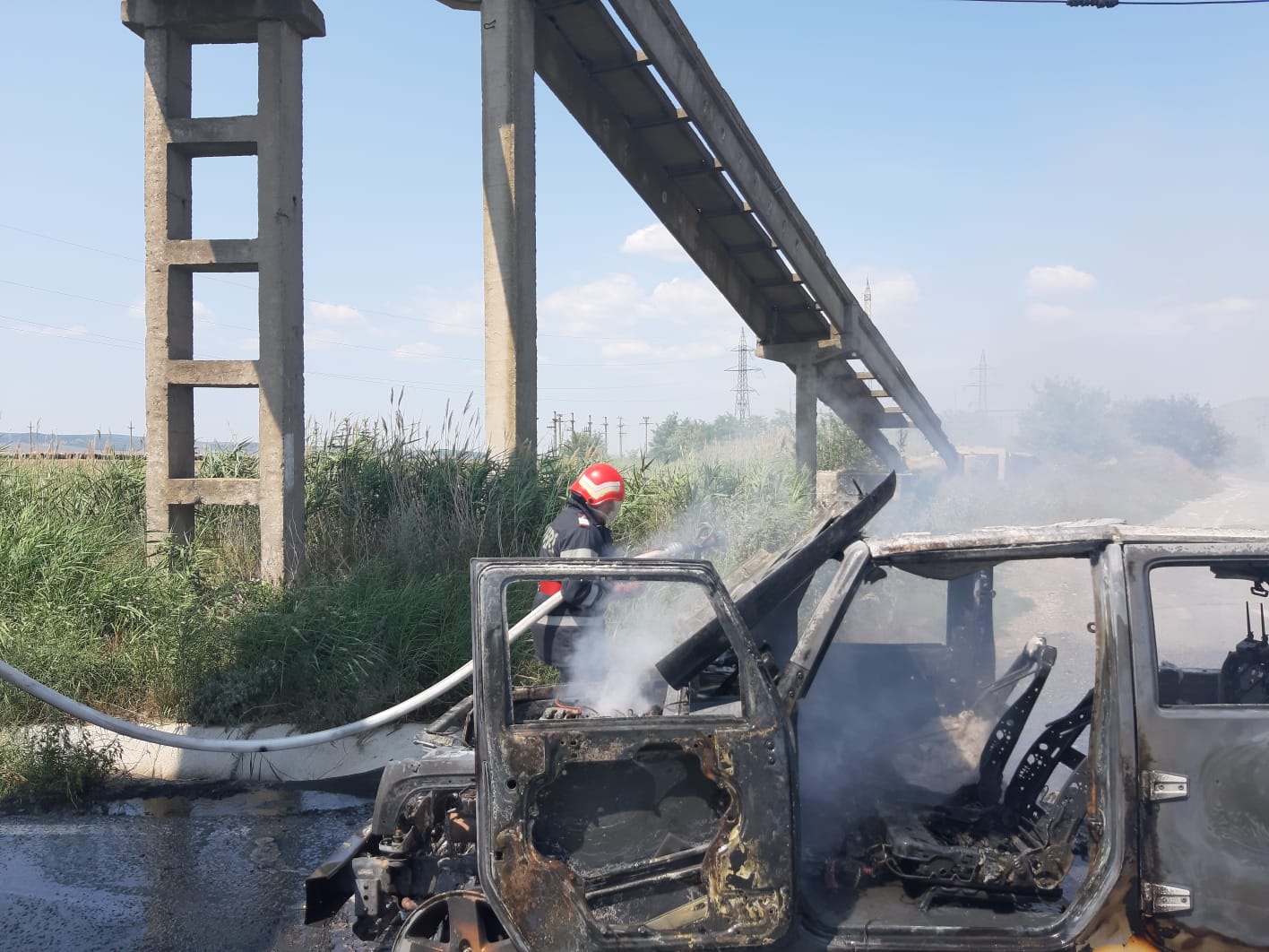 TULCEA: Autoturism în flăcări în apropiere de Babadag