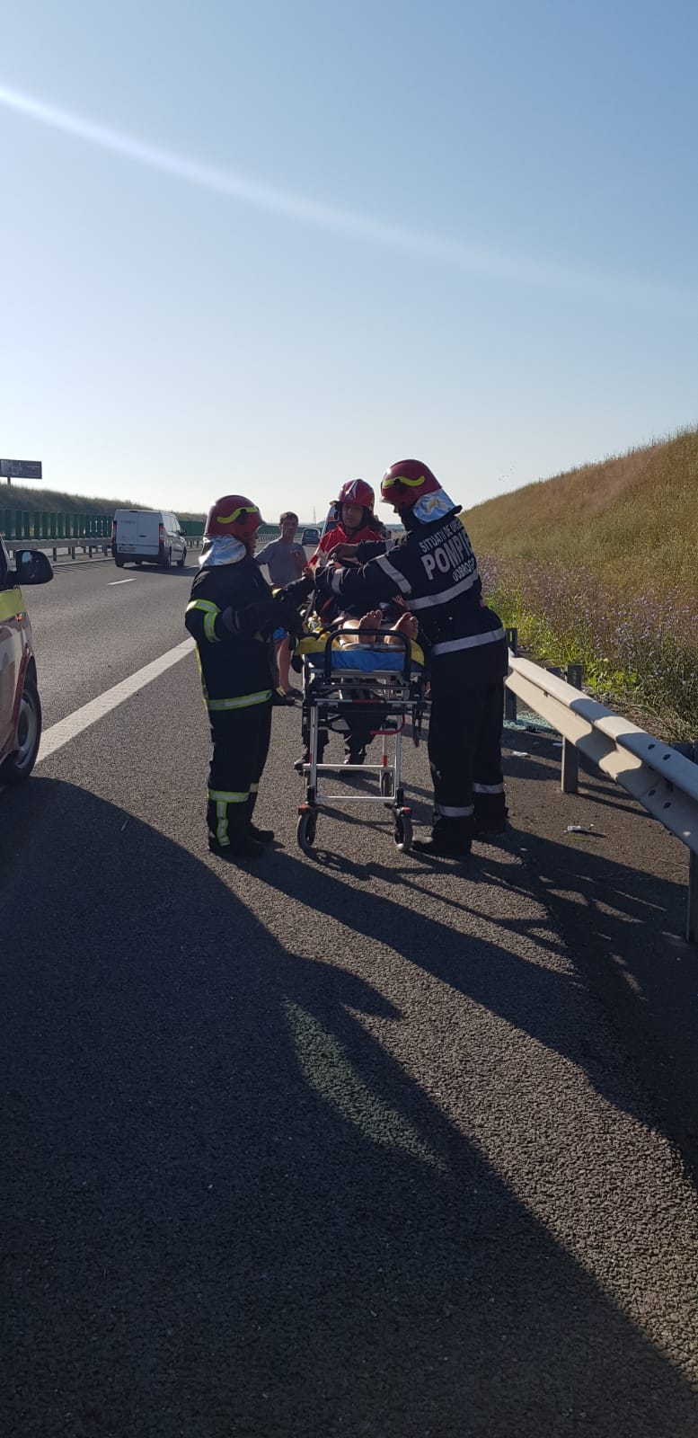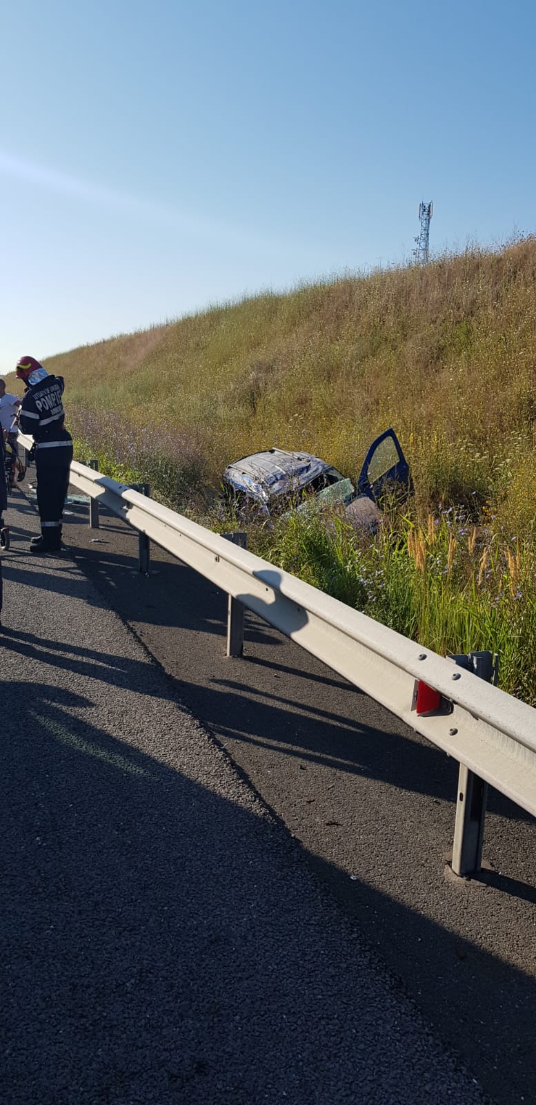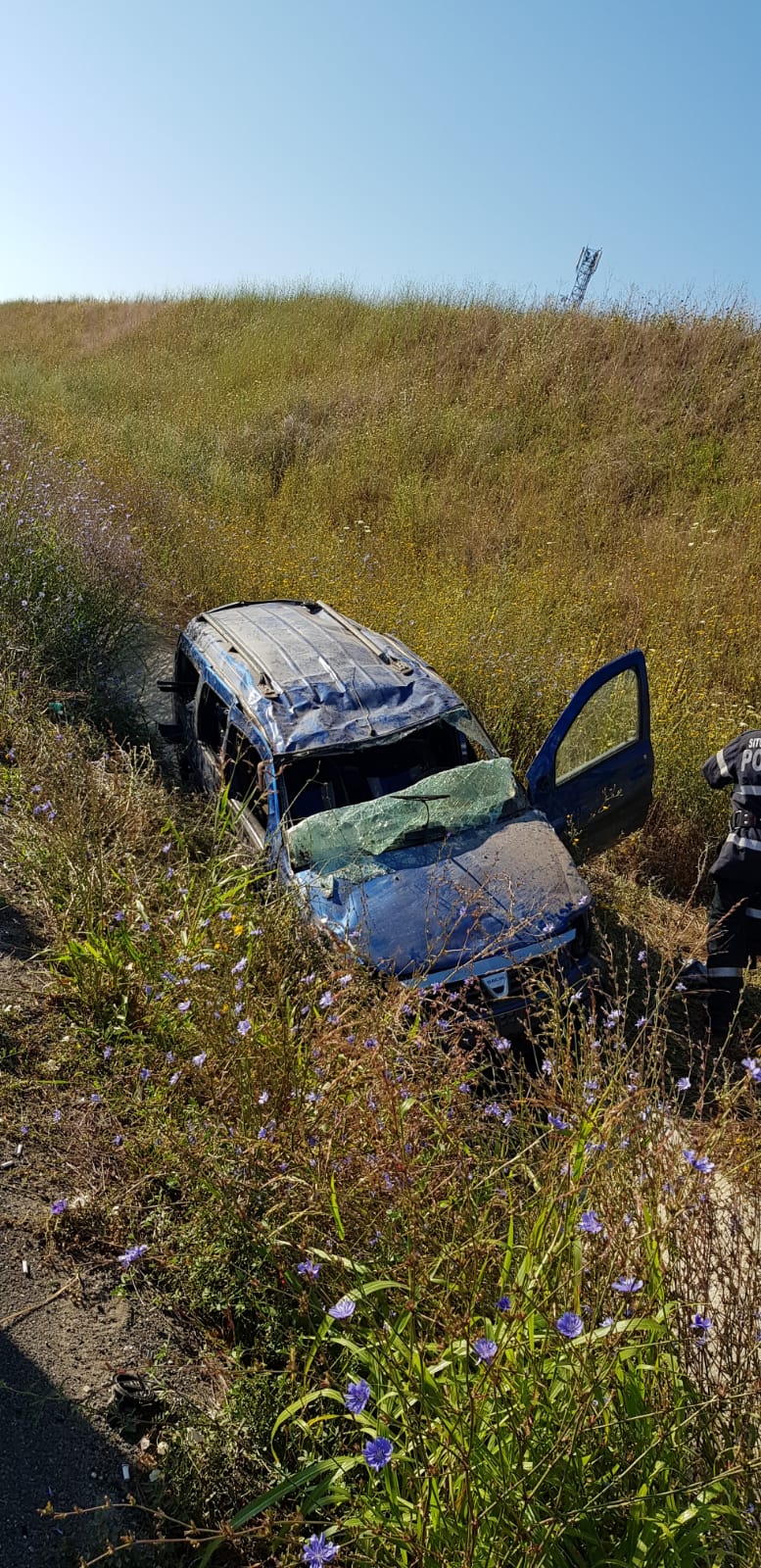 Un autoturism în care se aflau două persoane, s-a răsturnat pe Autostrada A2, sensul de mers Bucureşti – Constanţa, la kilometrul 176.