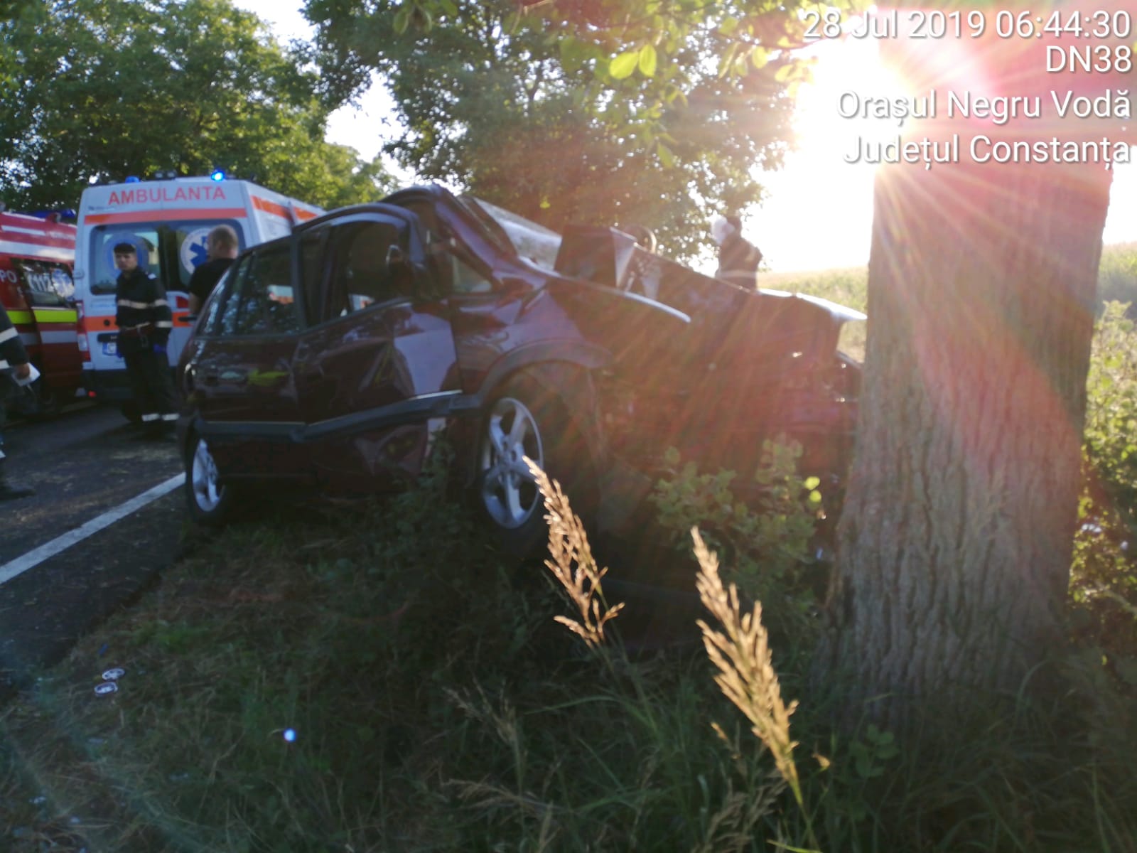Conform IPJ Constanţa „la data de 28 iulie a.c., in jurul orei 05.43, un bărbat a condus un autoturism pe DN 38, dinspre Agigea către Negru Voda, iar la kilometrul 41+200 ar fi pierdut controlul direcției de mers, a părăsit carosabilul și a intrat în coliziune cu un copac de pe marginea drumului. În urma accidentului a rezultat vătămarea corporală gravă a unei persoane și vătămarea corporală ușoară a alte doua, toate din același autoturism. Polițiștii au întocmit dosar penal”.