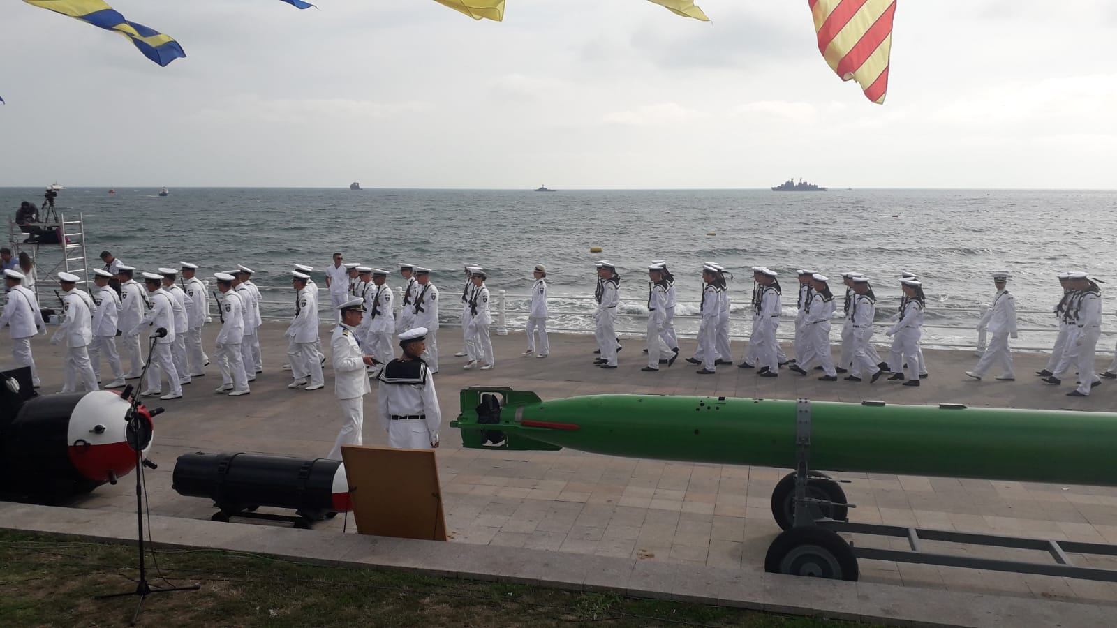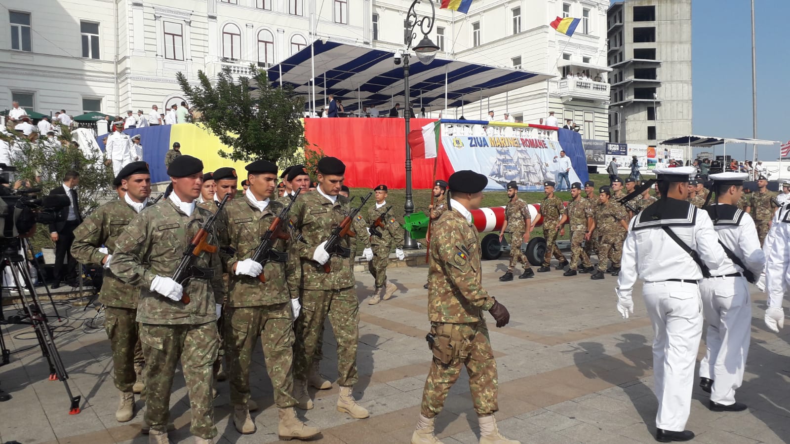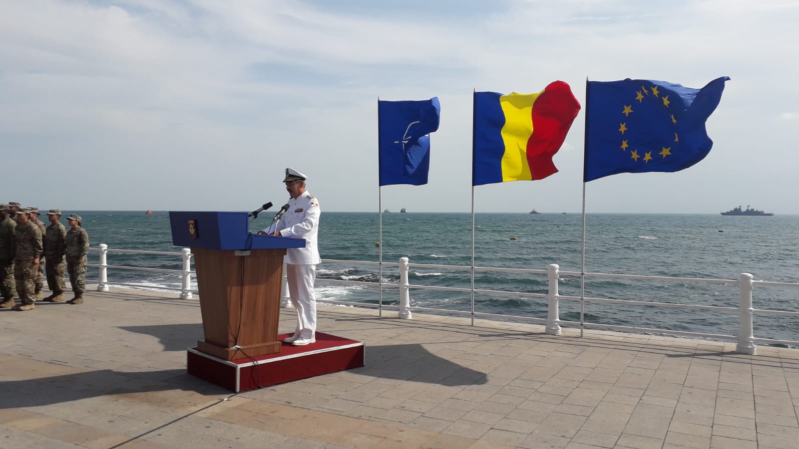 ”Publicul spectator de pe esplanada Comandamentului Flotei va putea să admire în dispozitivul naval de pe mare, în plus faţă de navele militare româneşti, o navă-şcoală ucraineană din clasa Petrushka, precum şi distrugătorul american USS Porter. Secvenţele aeriene vor fi asigurate de aeronave ale forţelor navale şi aeriene române, precum şi de aeronave italiene Eurofighter Typhoon şi un avion american de cercetare P8 Poseidon’, se arată în comunicatul Statului Major al Forţelor Navale (SMFN).
