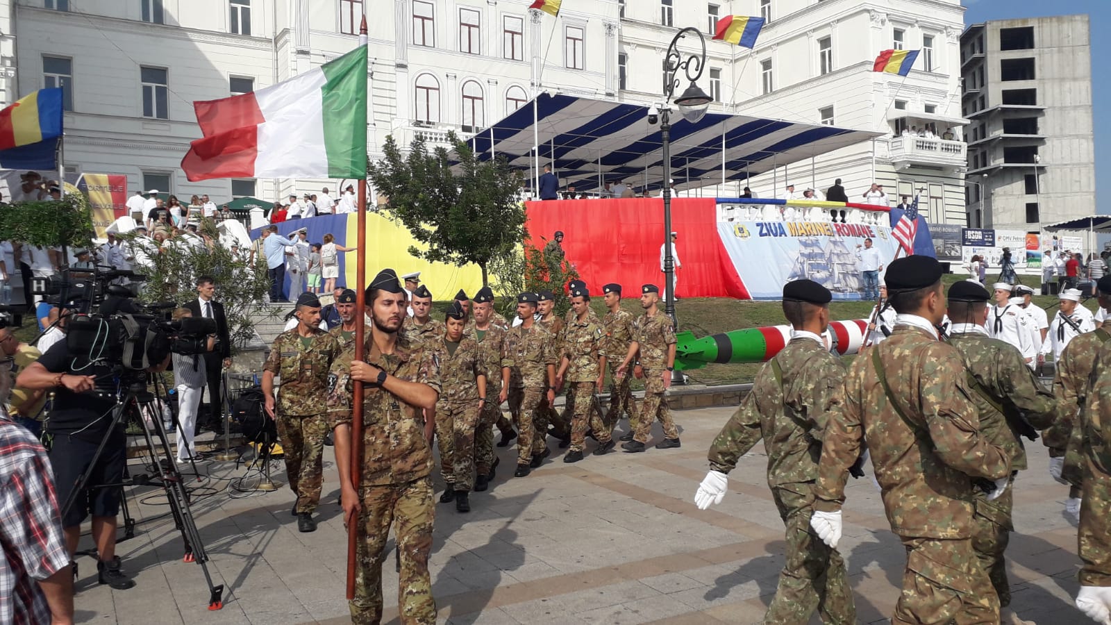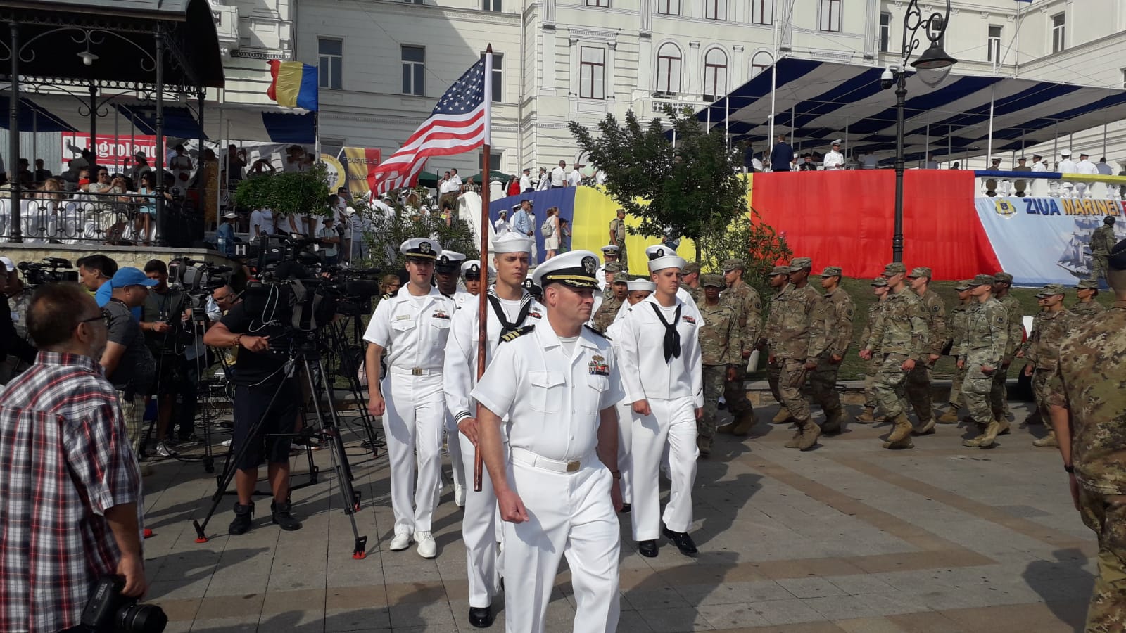 Unităţi navale, aeronave şi detaşamente de militari din SUA, Ucraina şi Italia participă la ceremoniile şi defilarea organizate, joi, la Constanţa, pe esplanada Comandamentului Flotei şi în rada portuară, cu prilejul celebrării Zilei Marinei Române, a informat Statul Major al Forţelor Navale (SMFN)