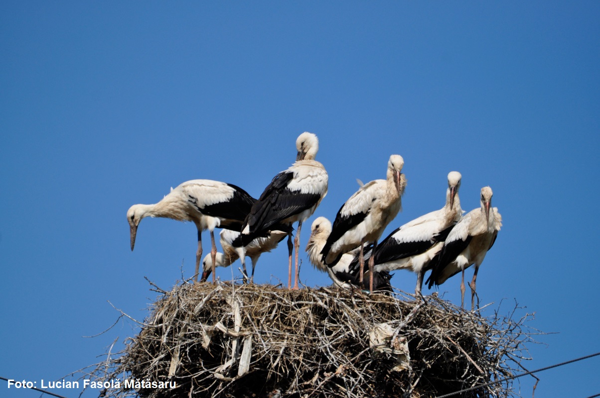 Record național: șapte pui de barză într-un singur cuib – FOTO