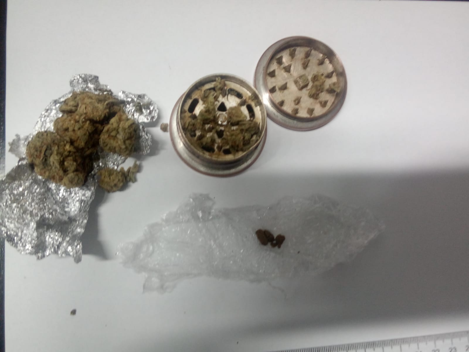 Asupra lor, jandarmii au mai găsit două aparate de mărunţit, nouă folii, din care cinci cu substanță sub formă de muguri, respectiv patru cu biluțe de culoare albă, șapte țigarete confecționate artizanal și 17 pliculețe autosigilante transparente din care: trei cu substanță vegetală sub formă de muguri, unul ce conține substanță solidă de culoare maro, două ce conțin zece pastile de culoare gri și 11 cu substanță albă sub formă de pulbere.