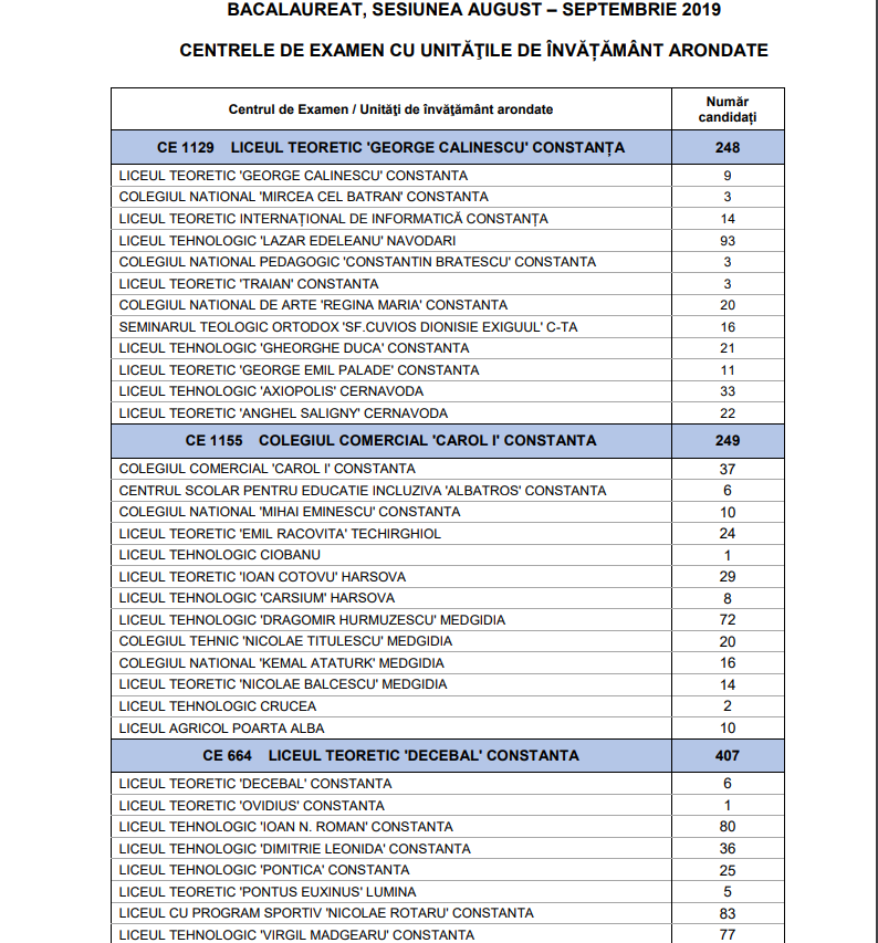 Județul CONSTANȚA: 1.583 de candidați s-au înscris în sesiunea august-septembrie 2019 a examenului de BACALAUREAT
