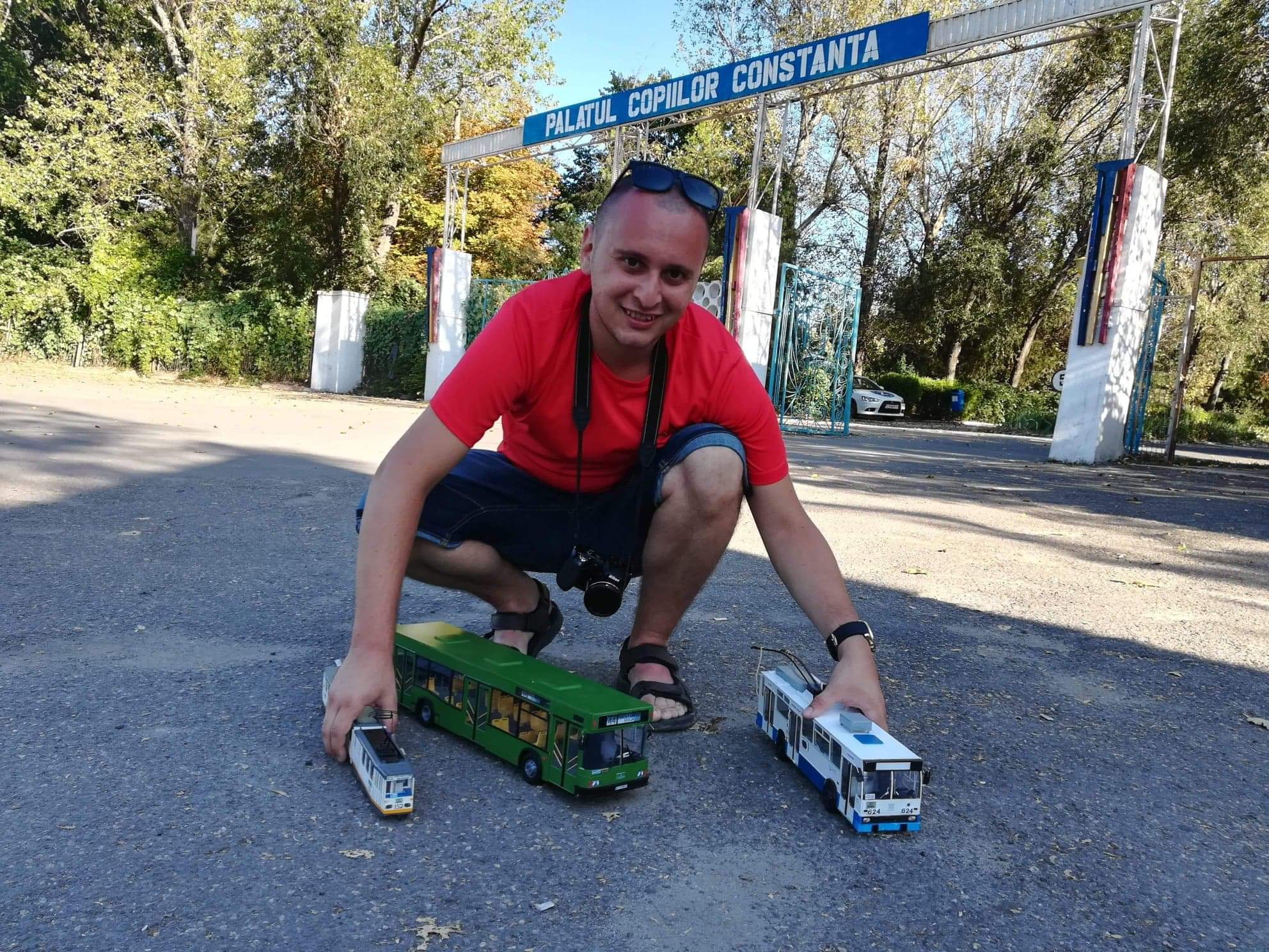 Este cazul lui Cristian Grozea, un tânăr din Iași, deținător al unor machete care reprezintă autobuze, troleibuze și tramvaie care au circulat pe străzile Constanței. L-am întâlnit și noi la malul mării.