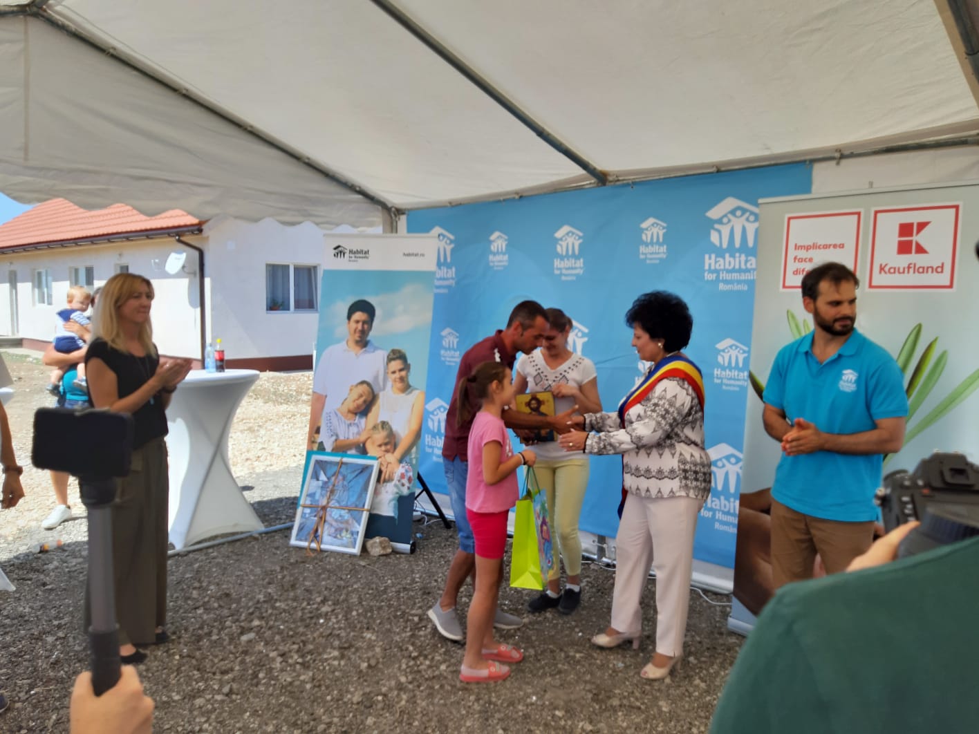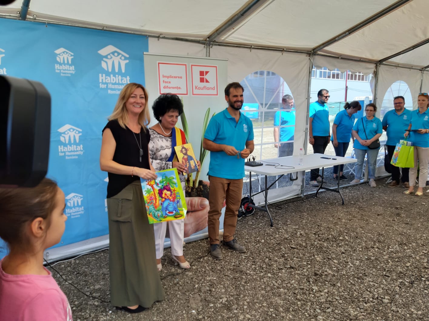 Peste 350 de voluntari veniți din toate colțurile țării și din SUA, Germania și Olanda au ajutat atunci la ridicarea locuințelor și au lucrat cot la cot cu cele opt familii-partener, care acum se bucură de un loc numit “acasă”.