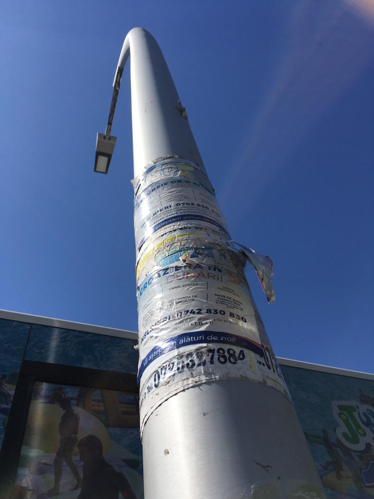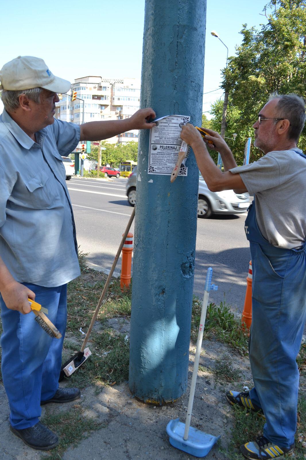 CONSTANȚA: Primăria a început o campanie de curățare a stâlpilor pe care sunt lipite afișe publicitare – FOTO