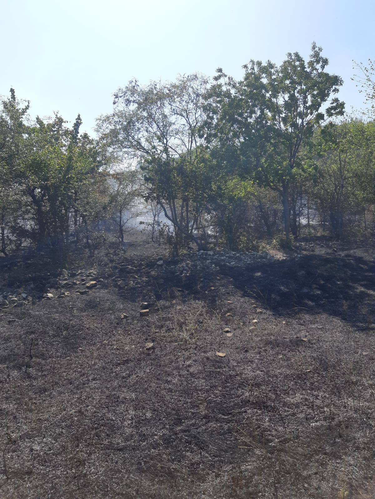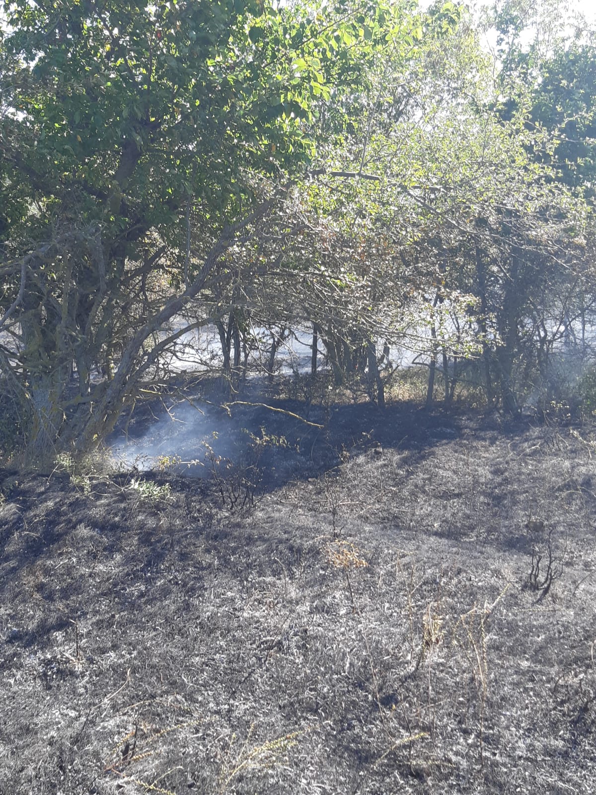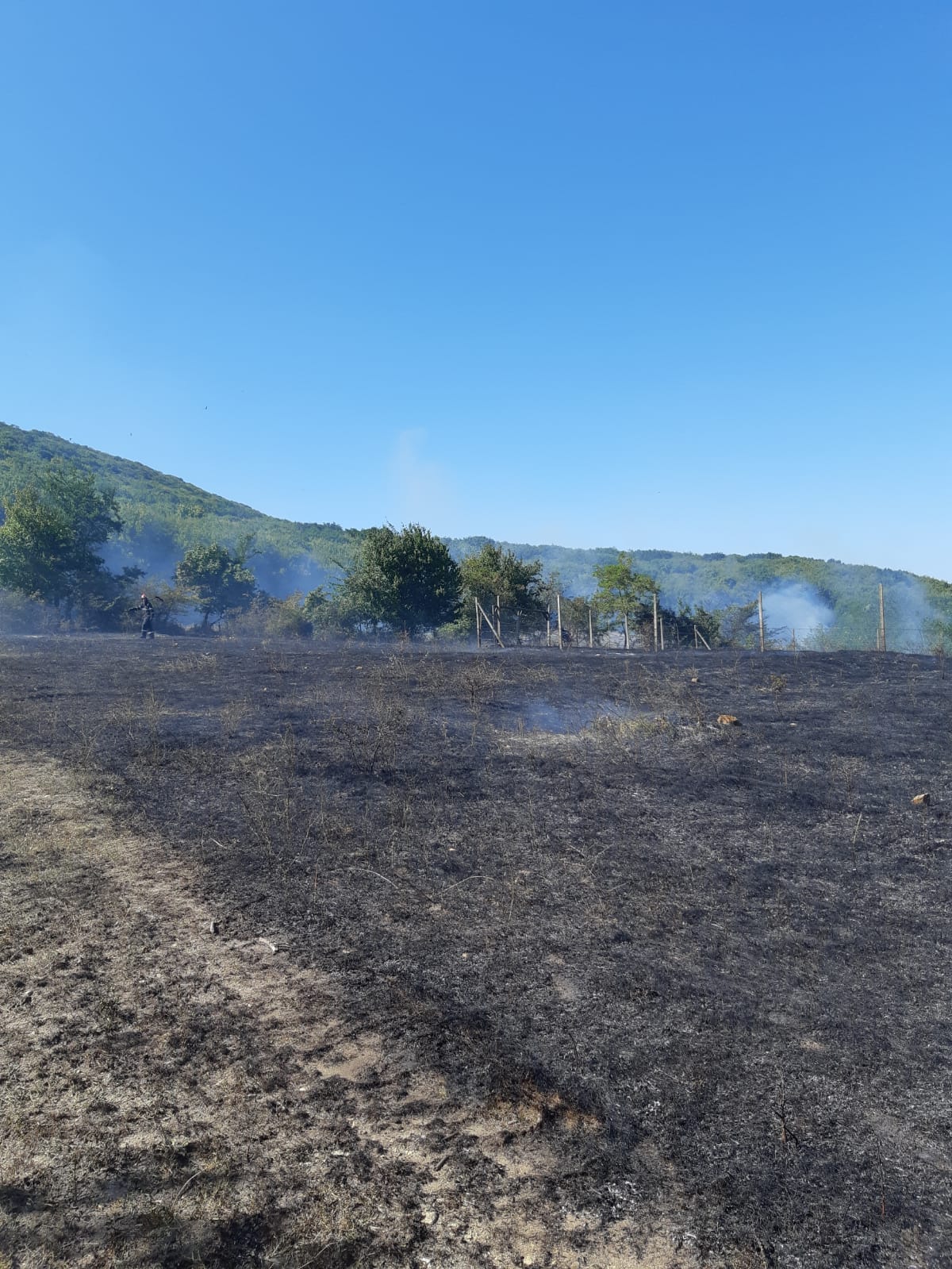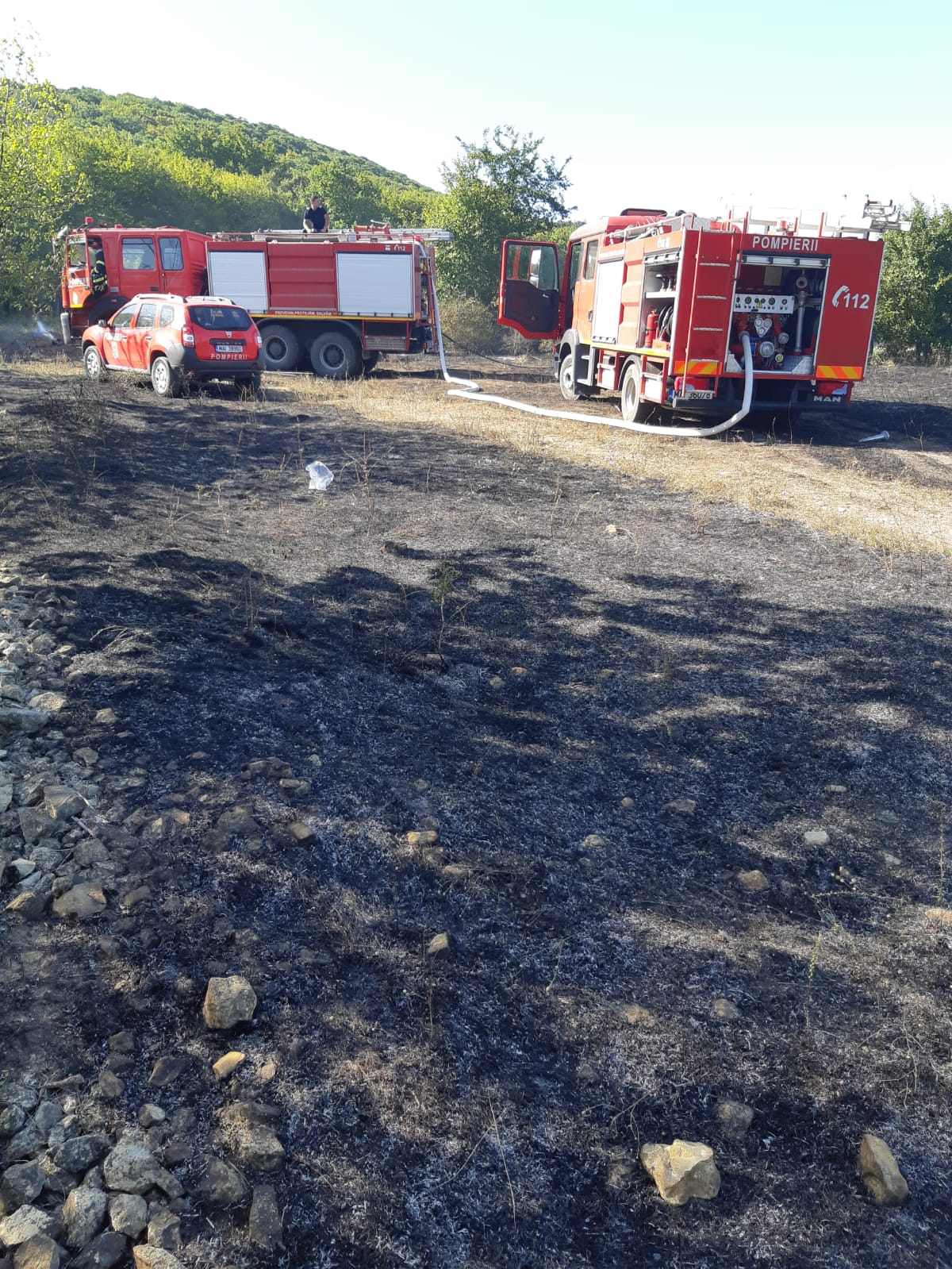 Incendiul a cuprins o suprafață de aproximativ 2500 mp de litieră și 5000 mp de vegetație uscată.