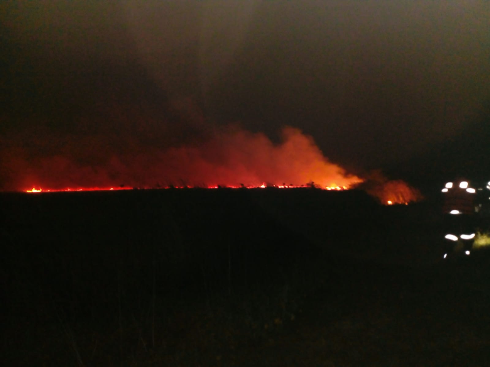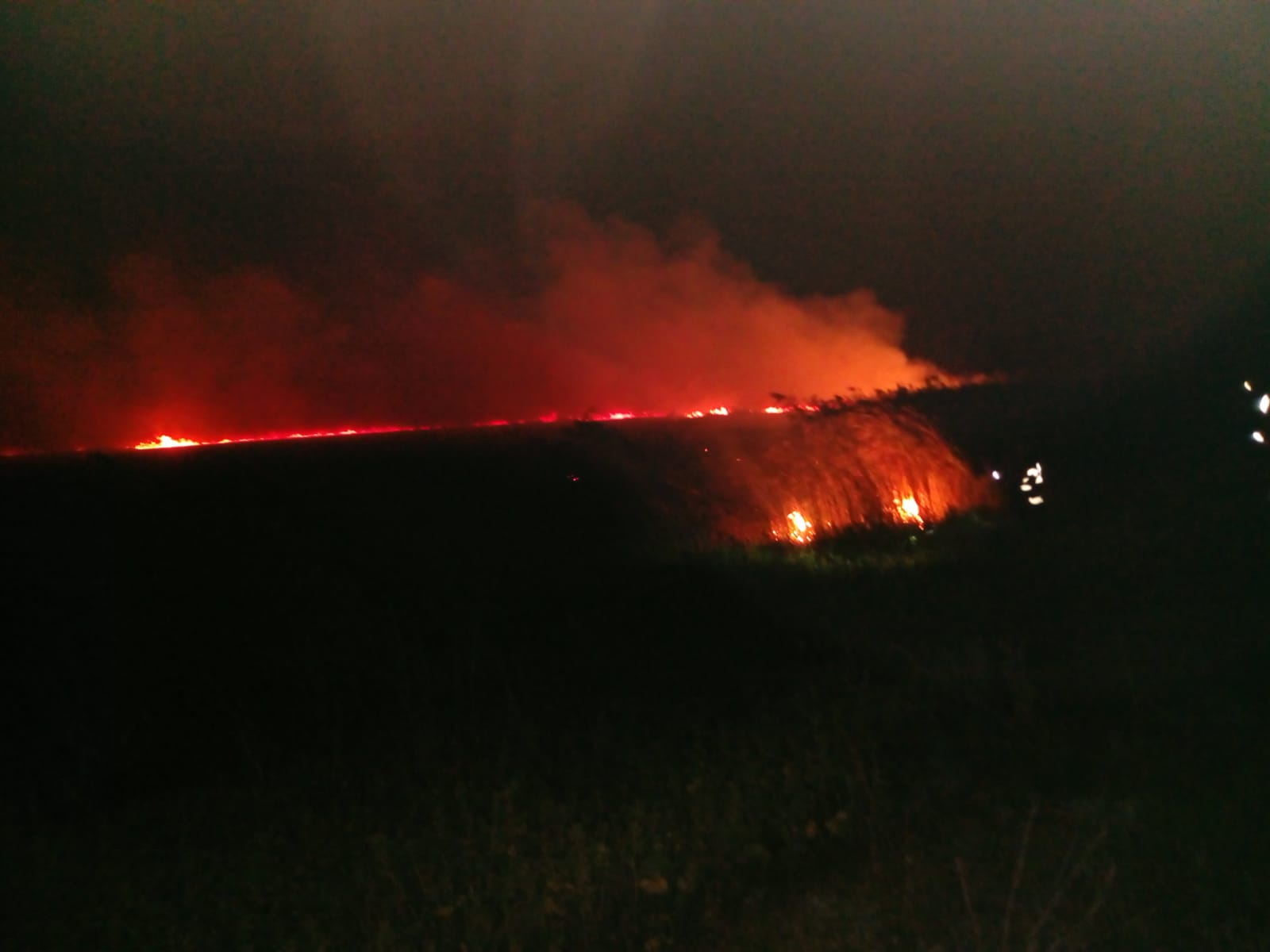 În zonă nu sunt alte obiective. Intervenția este îngreunată din pricina nopții și a terenului mlăștinos.