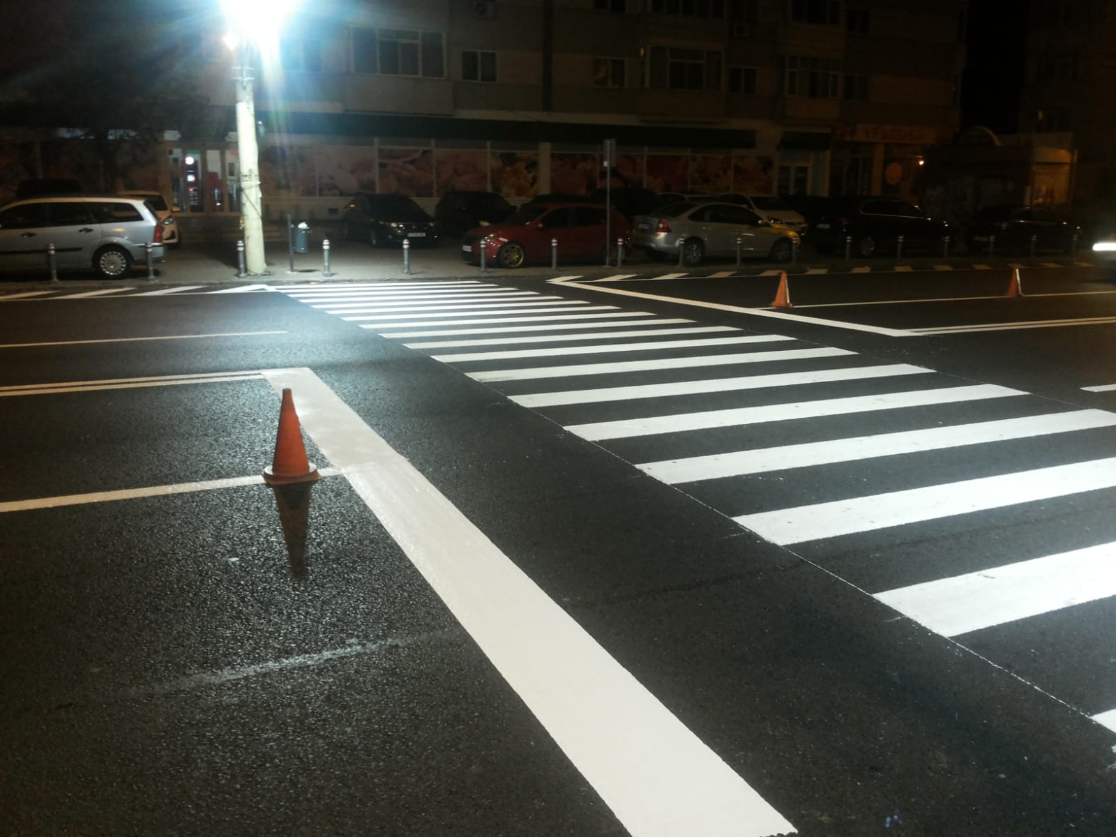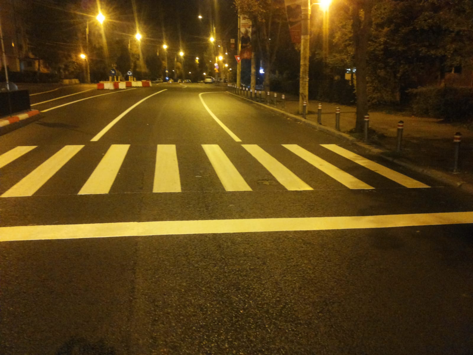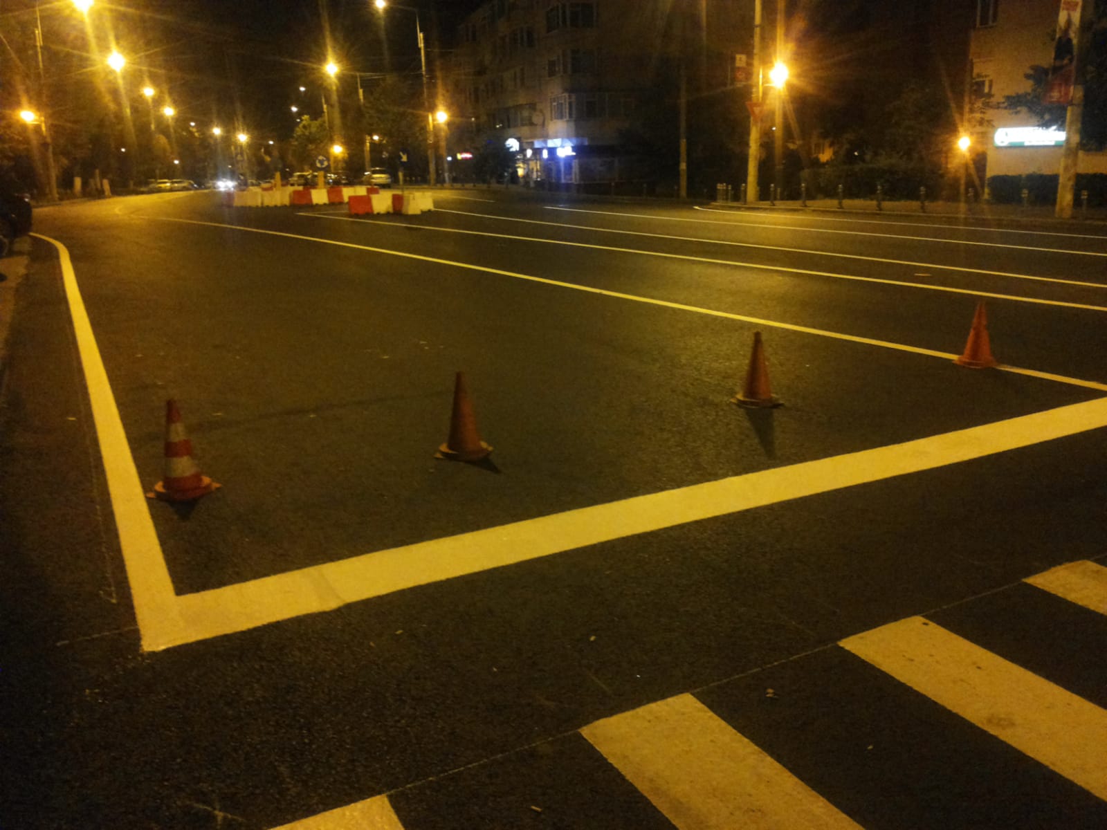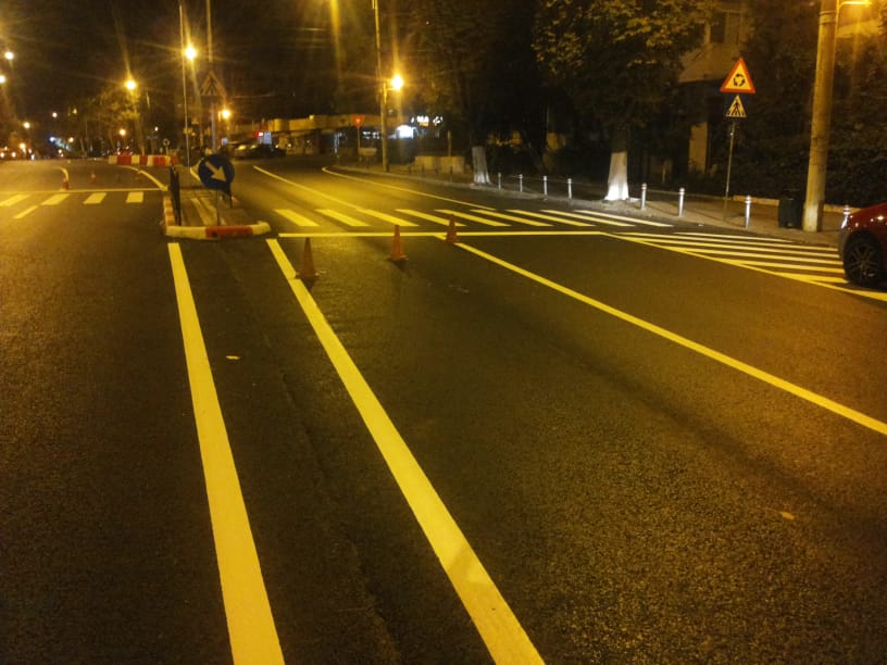 După finalizarea lucrărilor de asfaltare pe strada Soveja, S.C. Confort Urban, administratorul tramei stradale, a realizat nopțile trecute marcajele rutiere.