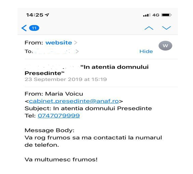 ANAF atenționează contribuabilii cu privire la emailuri false transmise în numele Cabinetului președintelui ANAF.