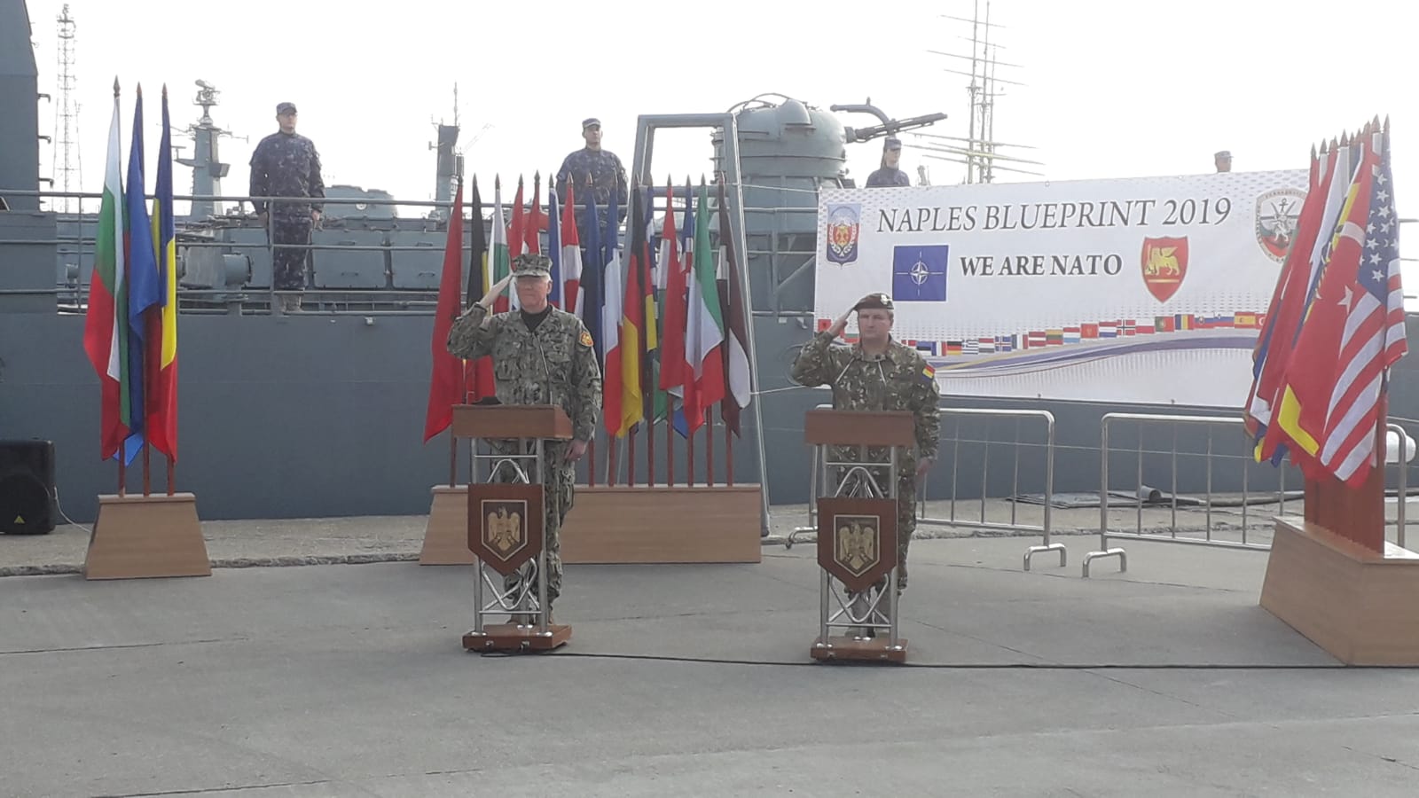 Cu această ocazie, locțiitorul șefului Statului Major al Apărării, generalul-locotenent Daniel Petrescu și comandantul JFC Napoli, Amiralul James Foggo III susțin declarații de presă.