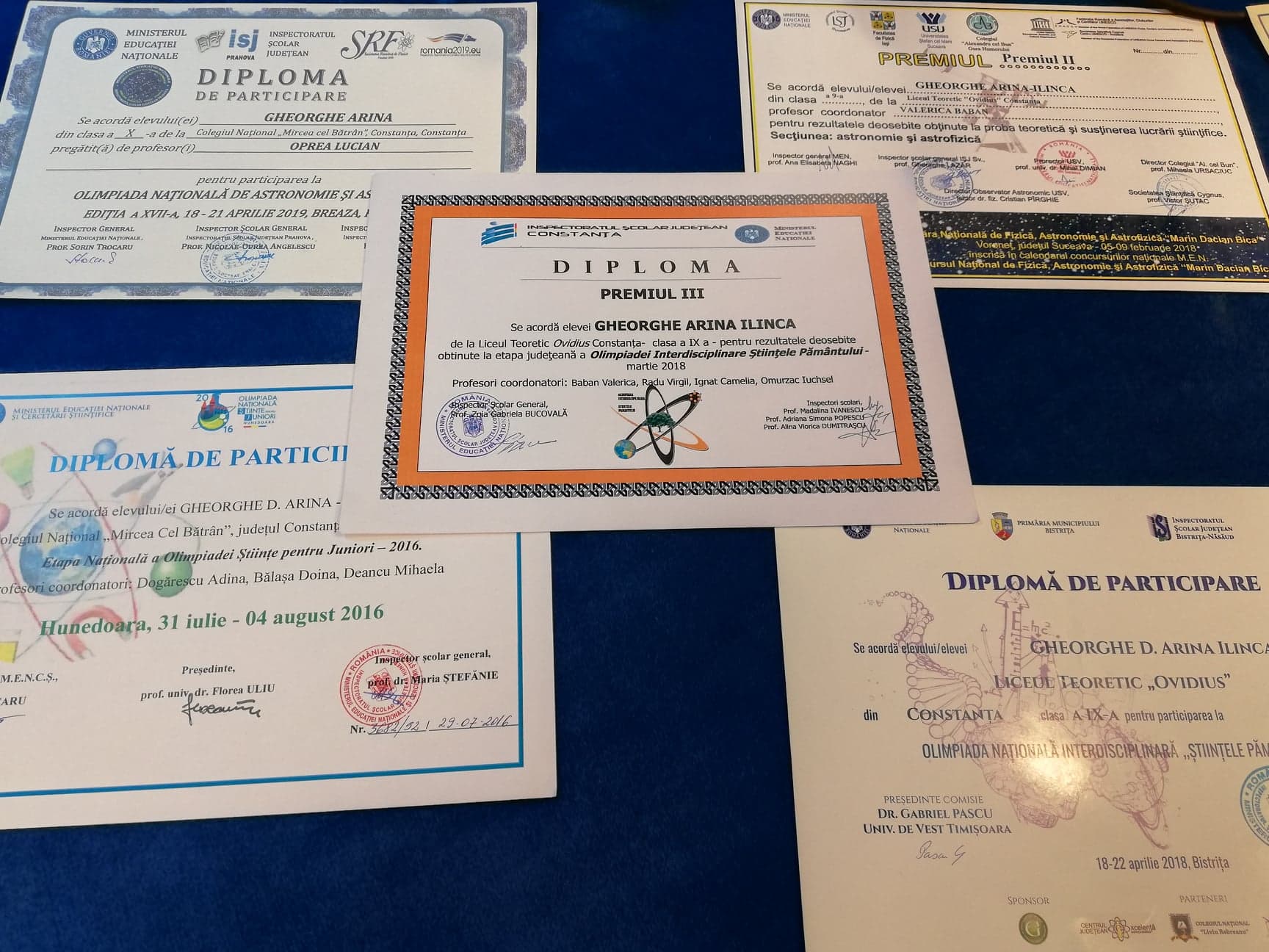 Arina-Ilinca Gheorghe : Plănuiesc să particip la Olimpiada interdisciplinară Științele Pământului, de chimie și evident la cea de Astronomie și Astrofizică. Am tendința de a mă pierde atunci când sunt sub presiune, astfel încât tot ce-mi doresc este să mă îmbunătățesc și să am o etică de muncă mai bună.