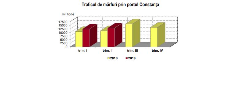 - Traficul de mărfuri prin portul Constanţa însumează 25,8 milioane tone în semestrul I 2019 şi este cu 17,4% mai mare decât în semestrul I 2018.