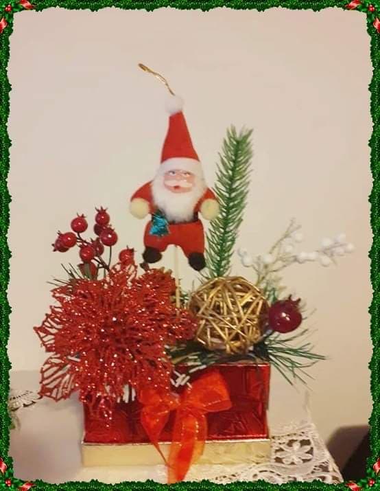 Carmen Petrișor: De sărbători putem oferi până la urmă orice, dacă o facem din inimă ! Pentru cei mici avem o multitudine de produse pe care le putem face cadou.O cană pe care am decorat-o cu pastă polimerică ,o jucărie croșetată, o căciuliță croșetată sau tricotată, un glob personalizat, o poșetuță din hârtie gumată cu personaje hibernale.Pentru cei mari de asemenea avem o gamă largă de obiecte și piese vestimentare pe care le putem realiza în casă.