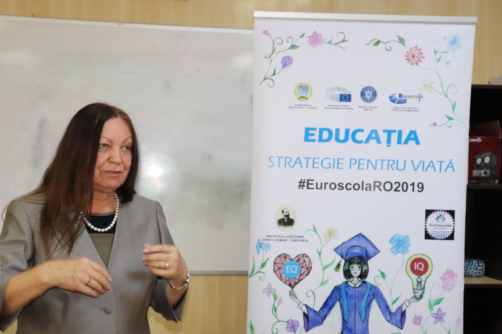 Claudia Portase : Acest proiect este de fapt un concurs național lansat de Biroul de legătură al Partlamentului European În România și de Ministerul Educației. Este la a 12-a ediție. Noi am început lucrul anul acesta și am și câștigat. Au participat 61 de școli și au fost admise 11. Eu și colega mea, Nicoleta Benchea, și copiii care au fost selectați am început crearea afișelor, alegerea personalității, realizarea campaniei încă din timpul verii, astfel încât la începutul lui septembrie am lansat intenția noastră de a participa la acest concurs național către biroul de legătură al Parlamentului European din România. Noi ne-am oprit asupra unei doamne profesoare de istorie care a ieșit la pensie și care este și scriitoare și ne-am gândit și la doamna Pop Paula Adriana.