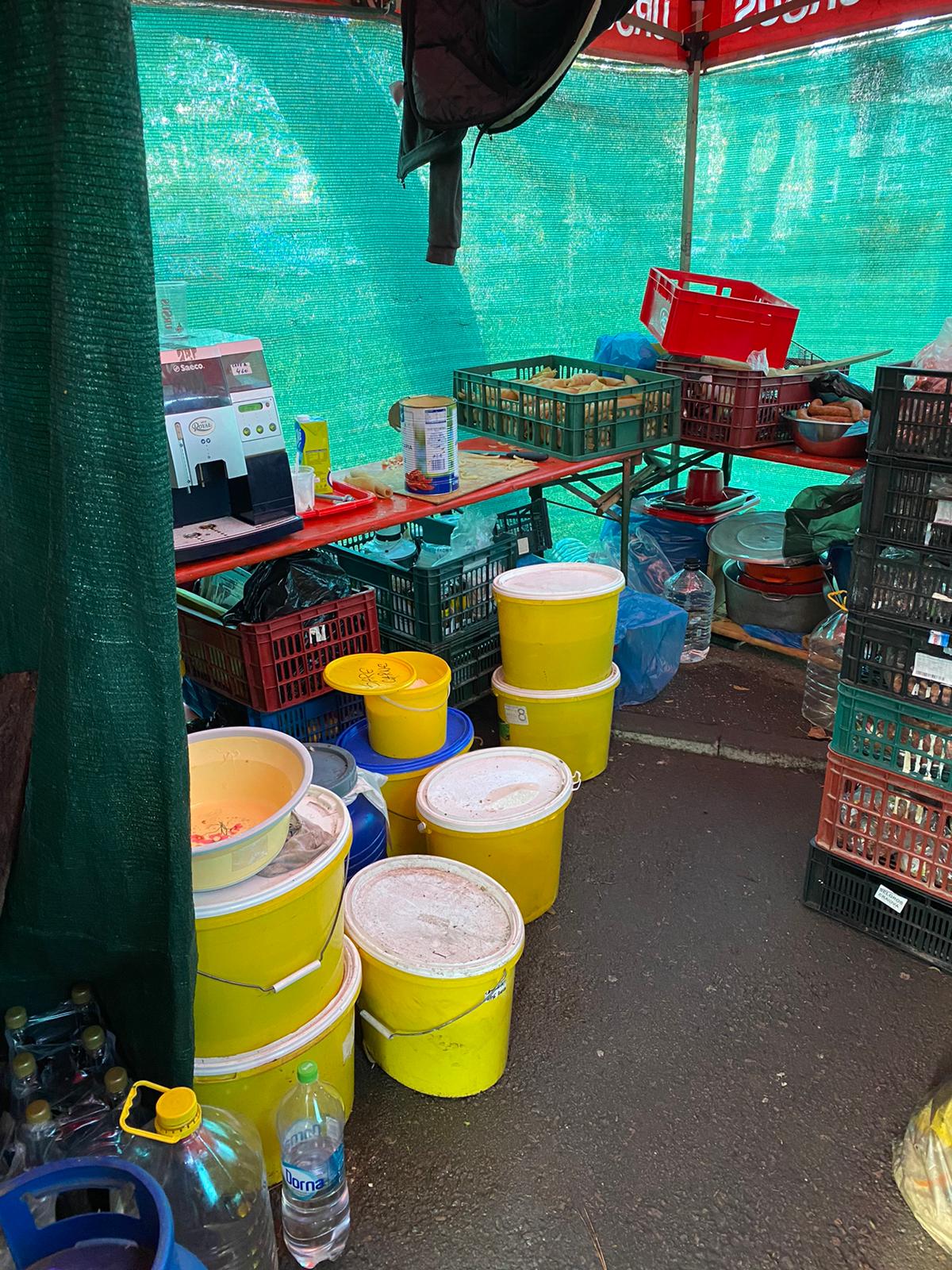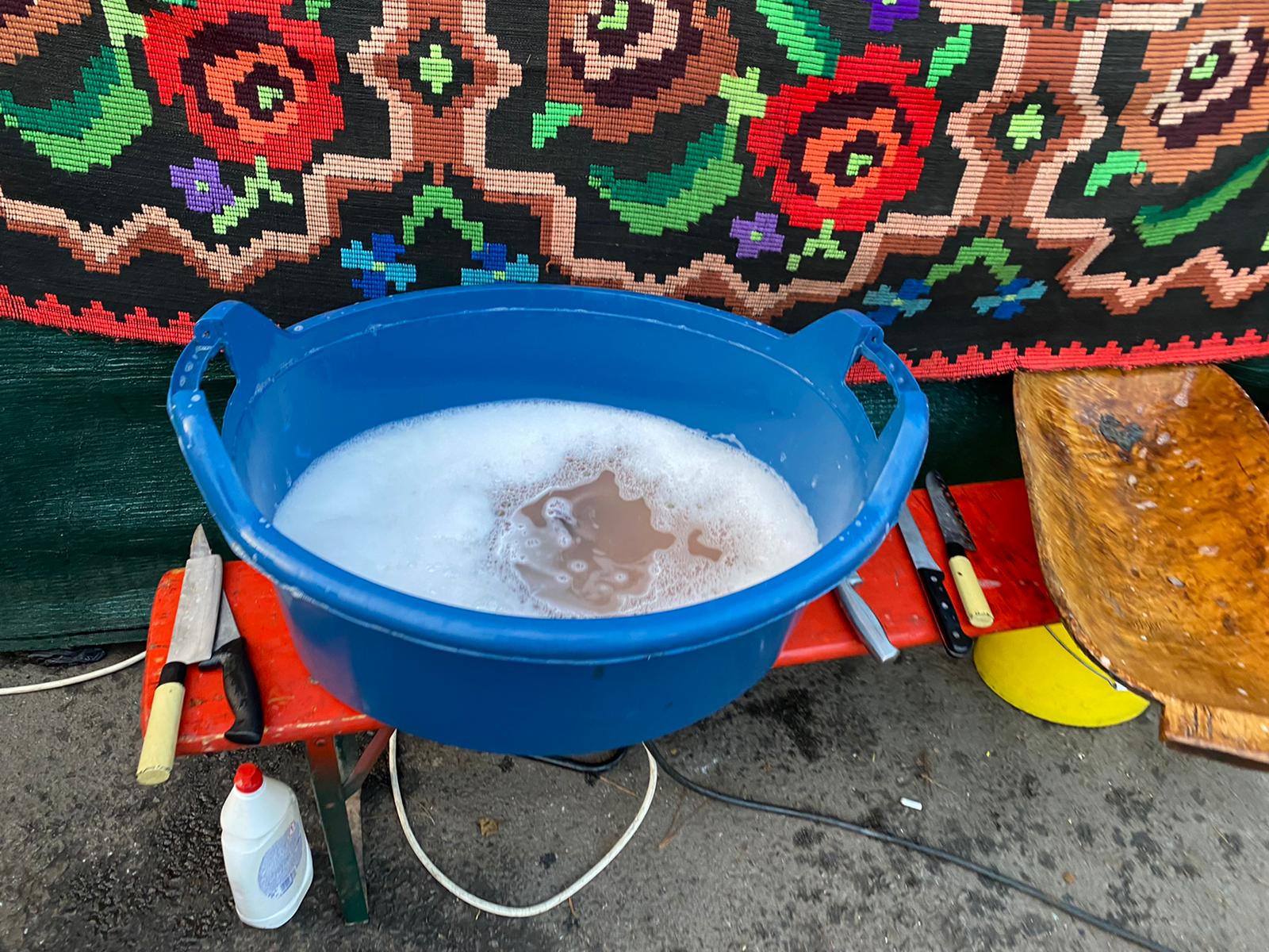 Mâncare pregătită pe trotuar, depozitarea alimentelor fără respectarea condițiilor impuse de producător și spălarea ustensilelor și a mâinilor…în lighean.