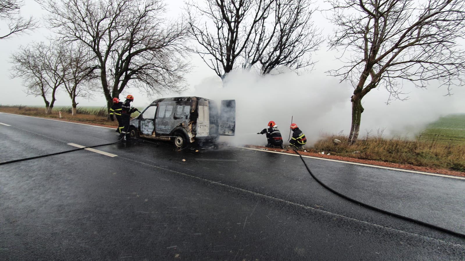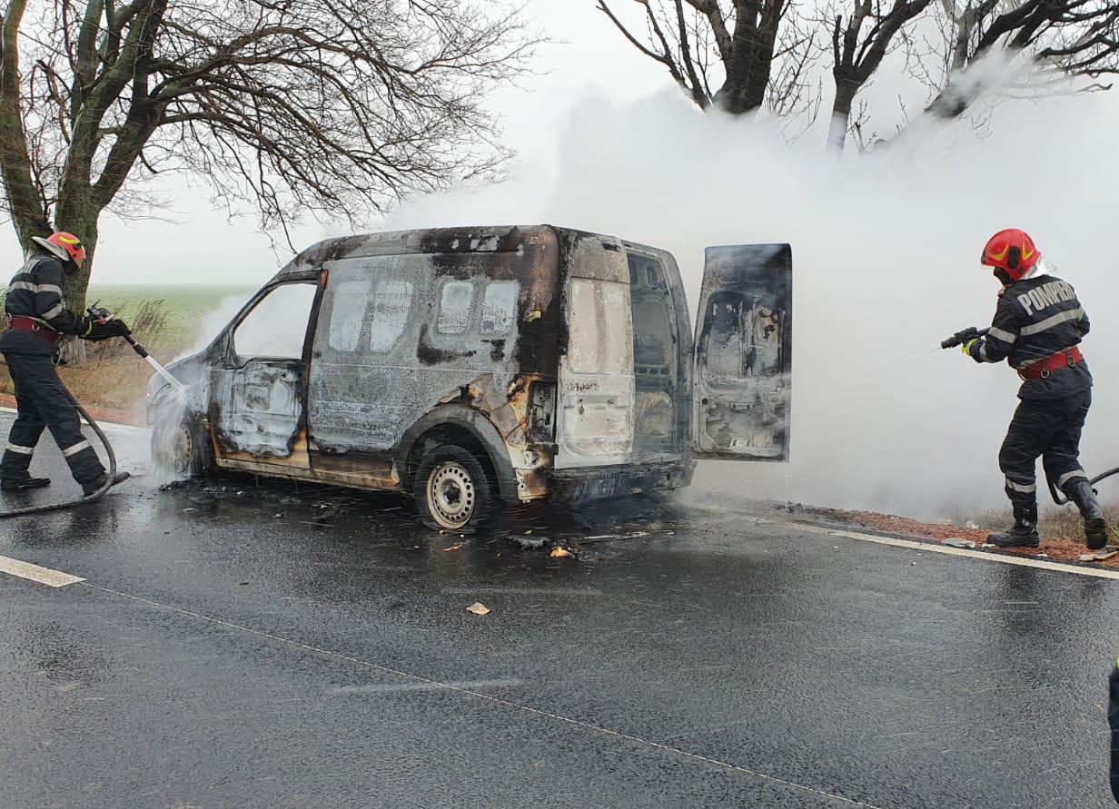TULCEA: O autoutilitară a luat foc pe DN 22A. Din fericire nu există victime – FOTO