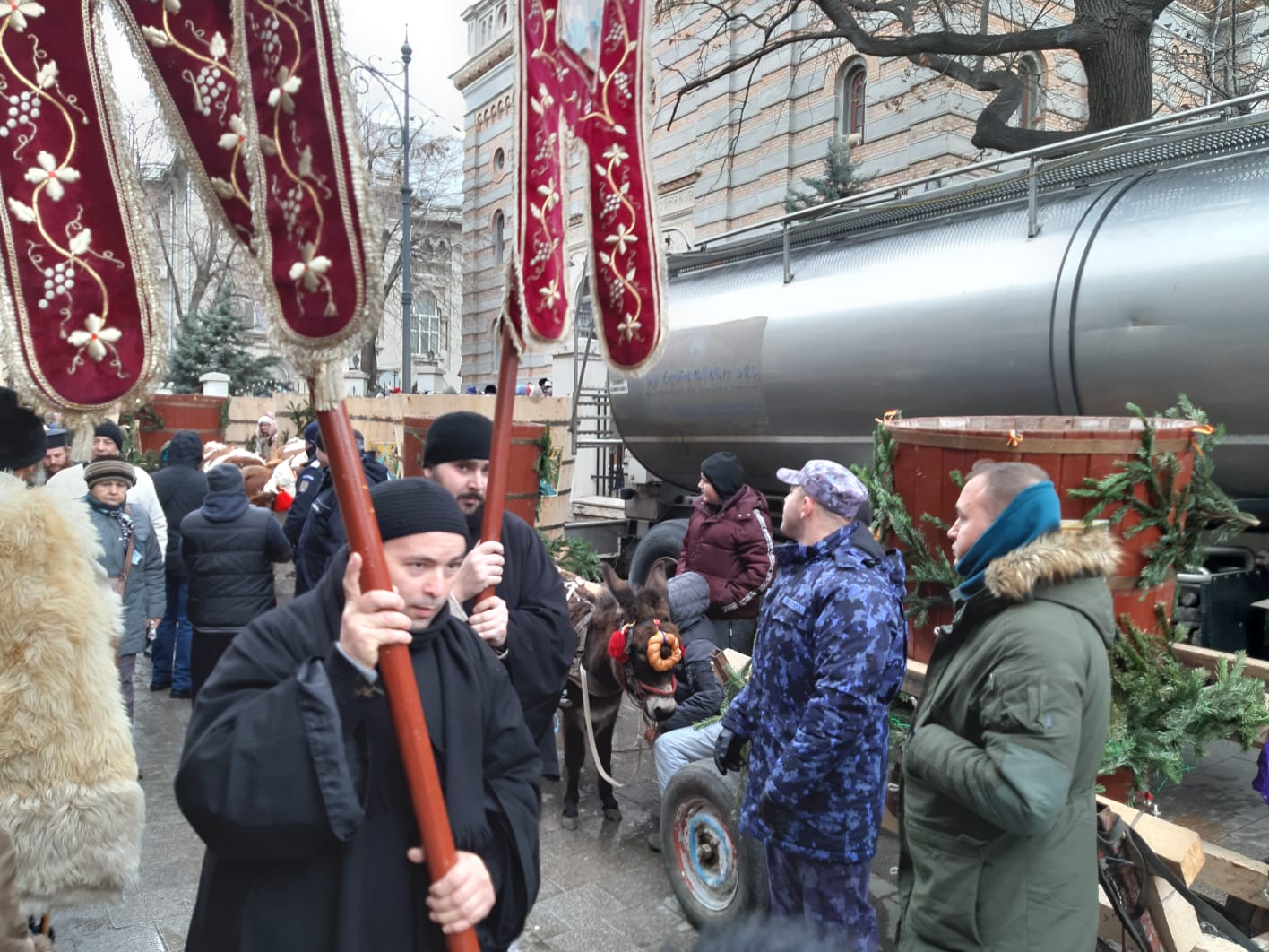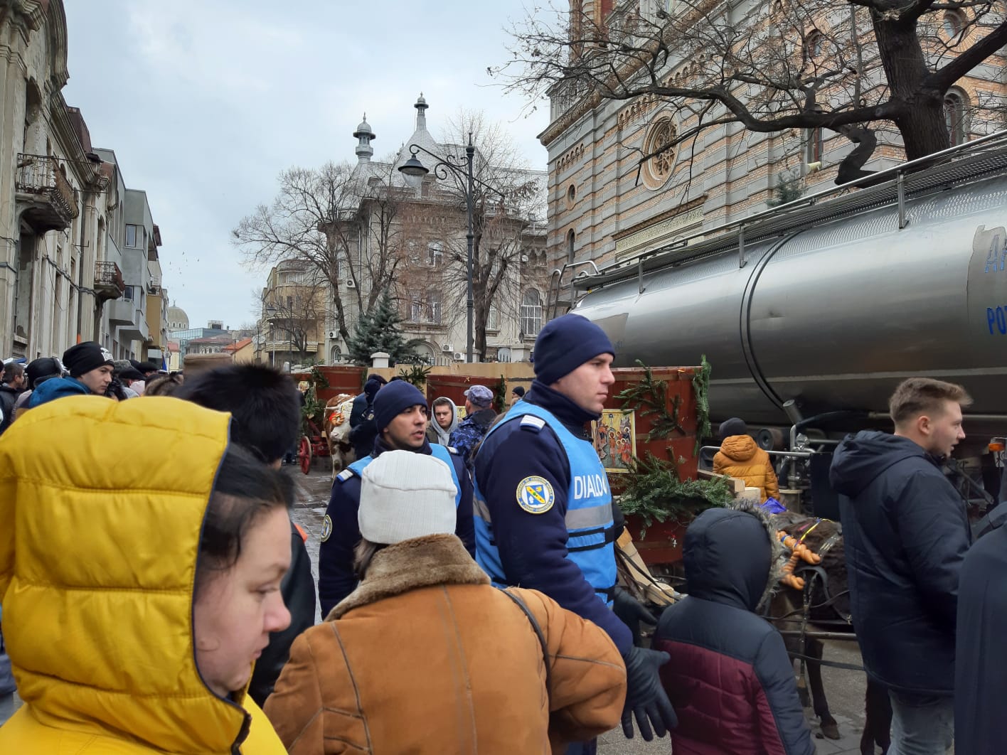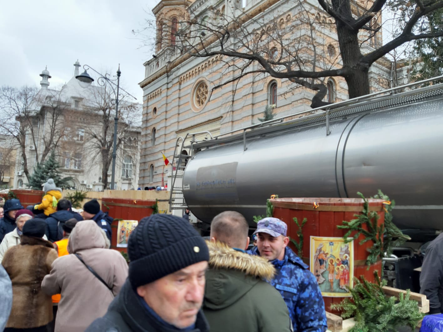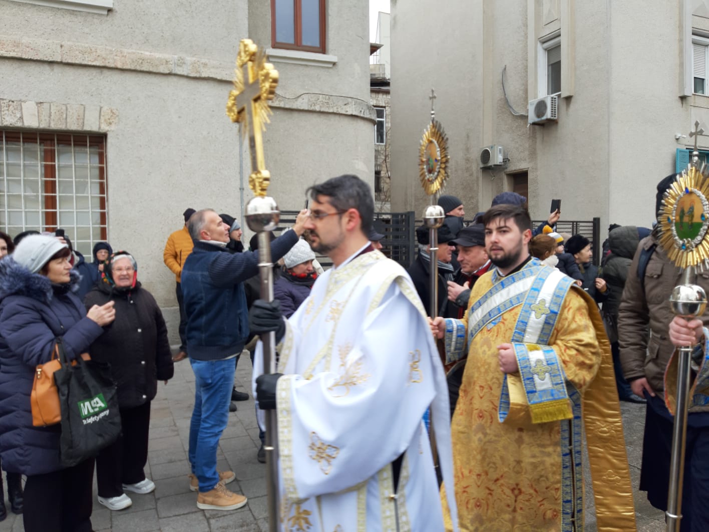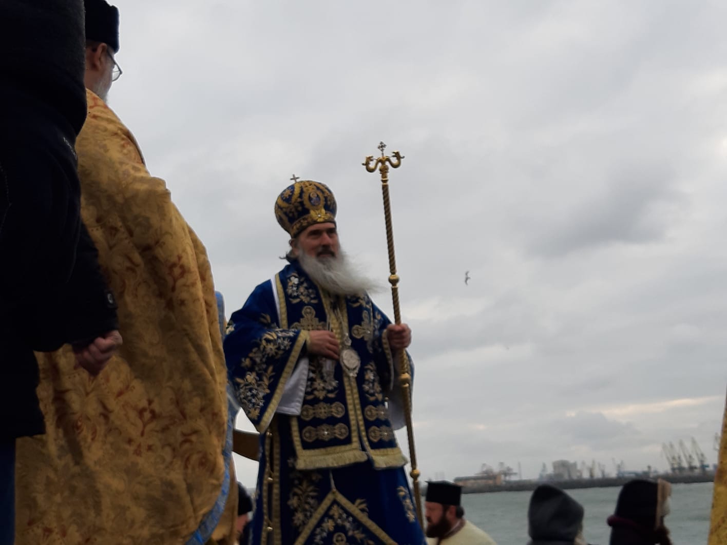 Pe faleza Cazinoului constănțean s-au strâns astăzi, în jur de 7000 de persoane pentru a asista la slujba de Bobotează, în ciuda rafalelor puternice de vânt, deoarece suntem încă sub avertizare de Cod Galben.