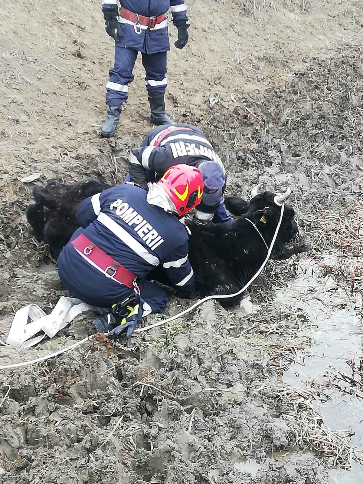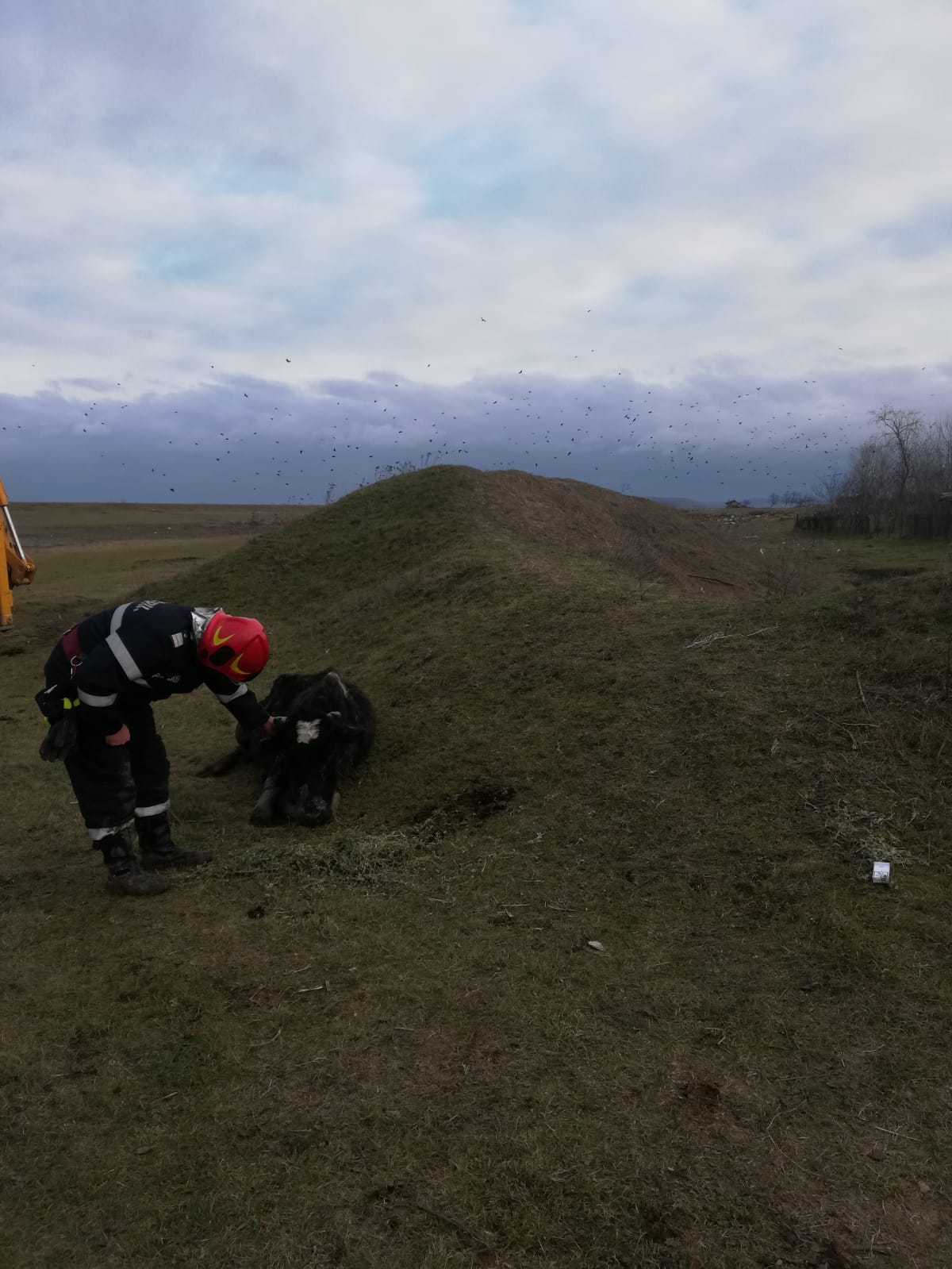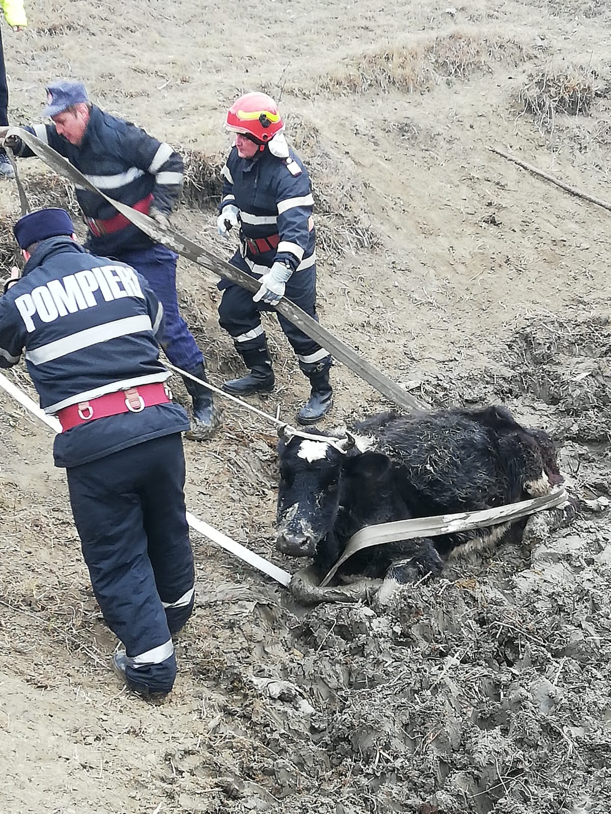 Județul TULCEA: Pompierii au salvat o bovină împotmolită în noroi – FOTO