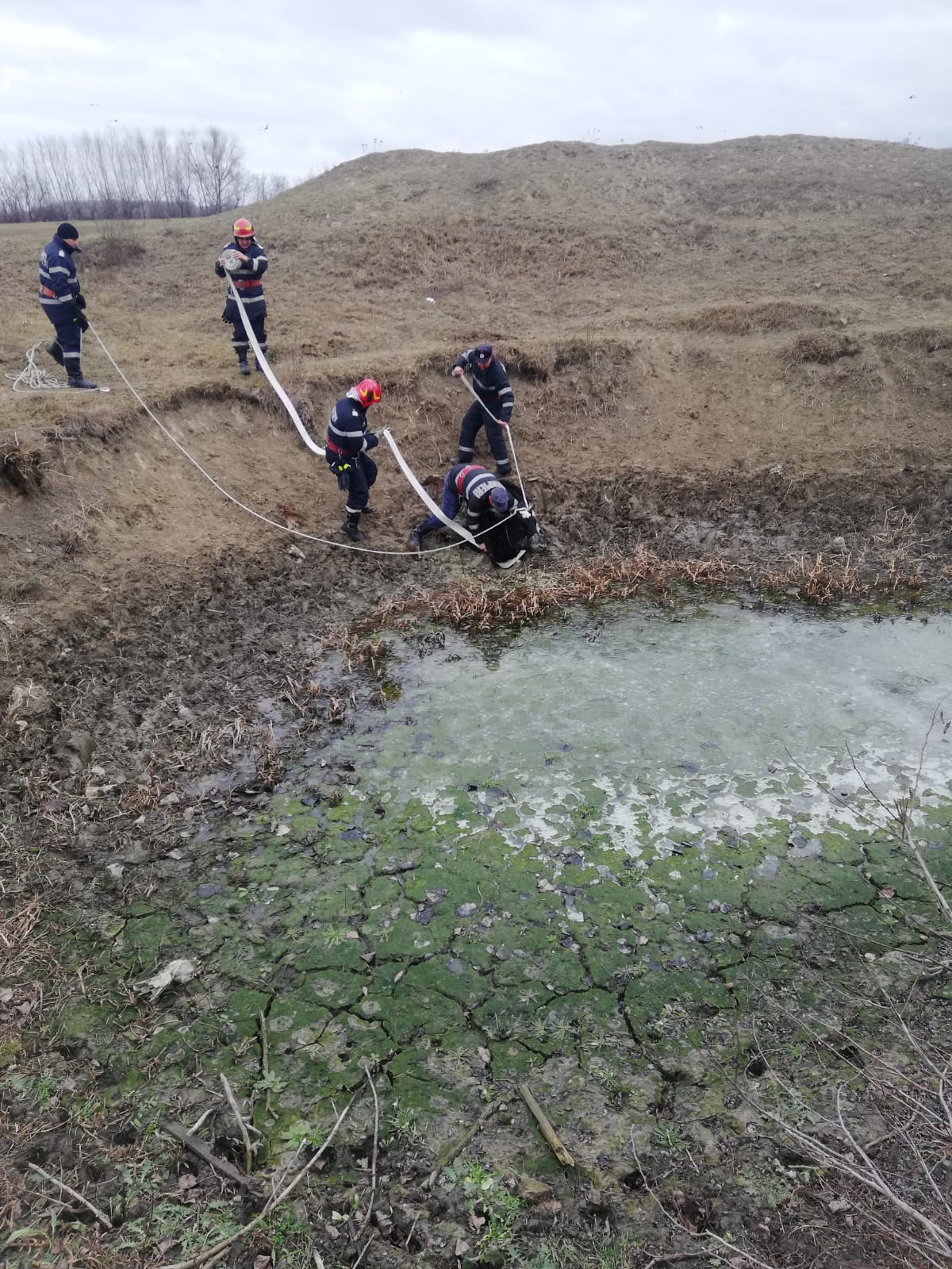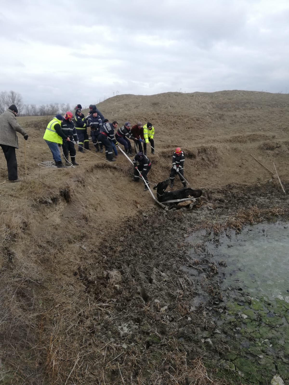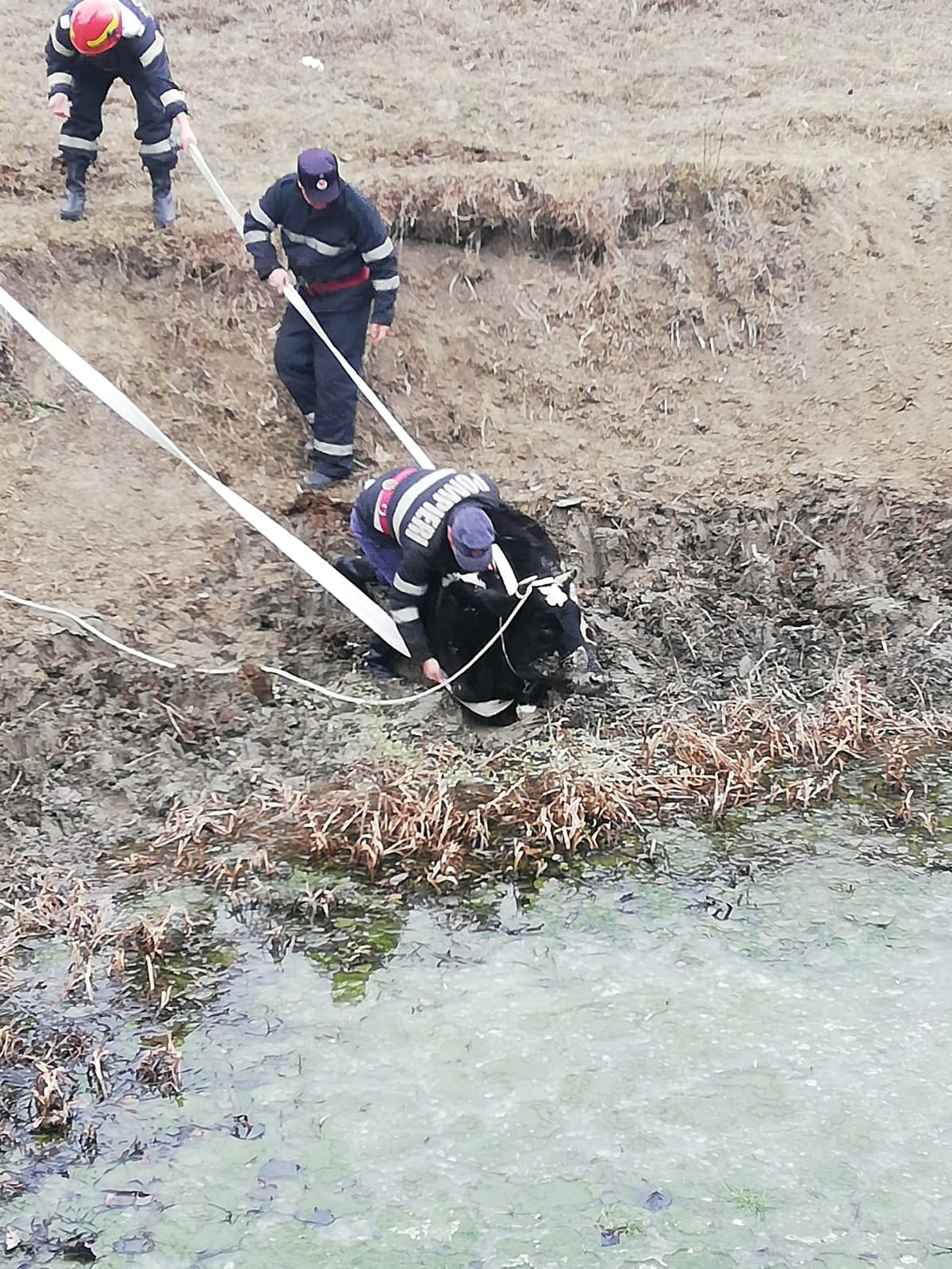Județul TULCEA: Pompierii au salvat o bovină împotmolită în noroi – FOTO