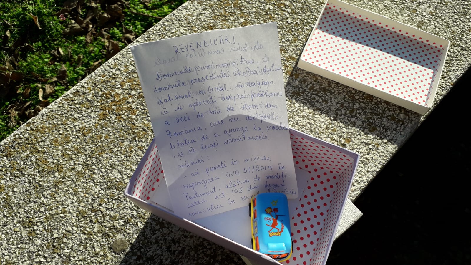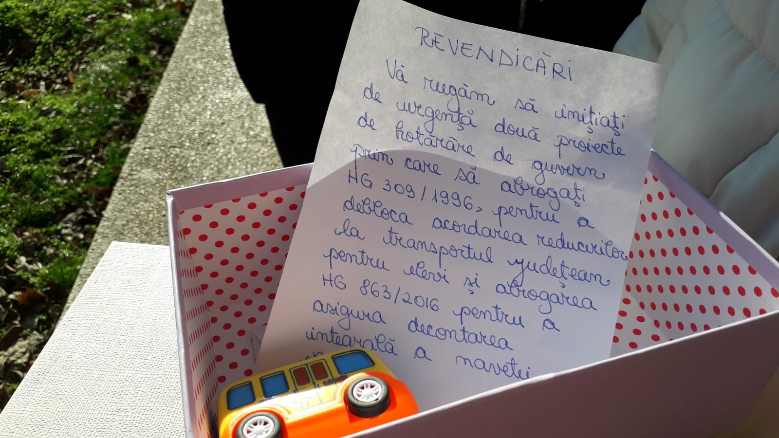 Asociația Elevilor din Constanța trimite colete către premierul României, Ludovic Orban, Ministrul Educației și Ccercetării, Cristina-Monica Anisie și Ministrul Lucrărilor Publice, Dezvoltării și Administrației, Ion Ștefan, prin care doresc să lanseze un ultimatum decidenților, în legătură cu transportul elevilor către școlie unde învață.
