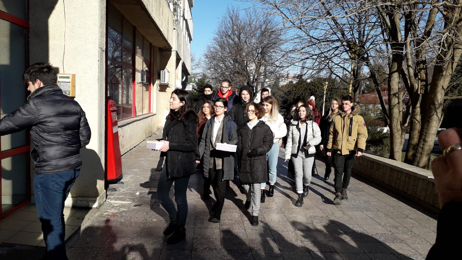 Mai mulți membri ai Asociației Elevilor din Constanța, s-au strâns astăzi, în fața Oficiului Poștal nr. 2, de lângă Casa de Cultură a Sindicatelor, unde au prezentat ”cadourile” pe care le-au expediat guvernanților.