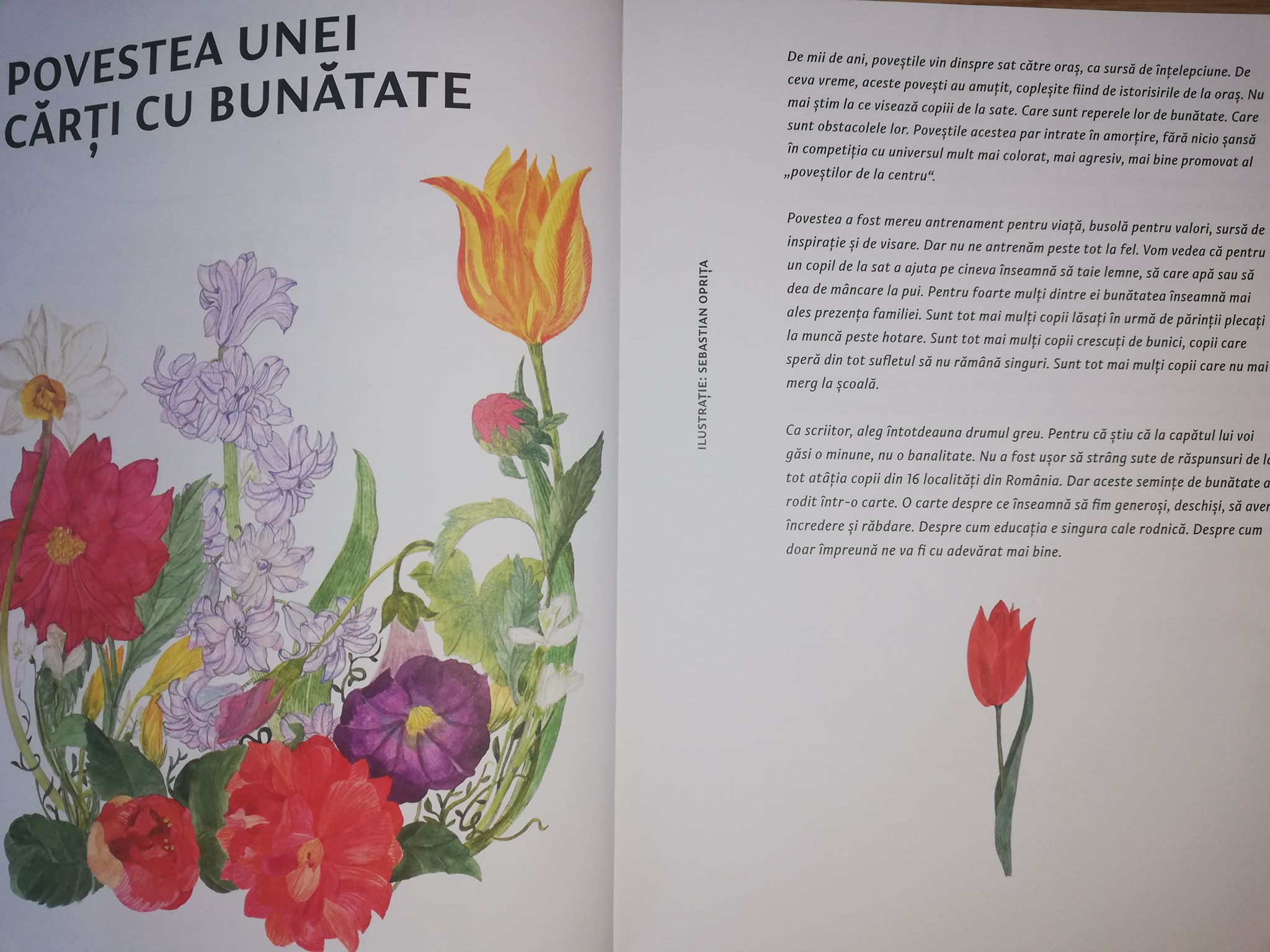 A întrebat copiii din 17 sate (inclusiv din județul Constanța) ce însemnă pentru ei a fi bun, ce fapte bune și-ar dori din partea celorlalți, ce culoare are bunătatea, ce oameni buni cunosc. Iar aceste semințe de bunătate au rodit într-o carte despre ce înseamnă să fim generoși, deschiși, să avem încredere și răbdare, despre cum educația e singura cale rodnică, despre cum doar împreună ne va fi cu adevărat mai bine.