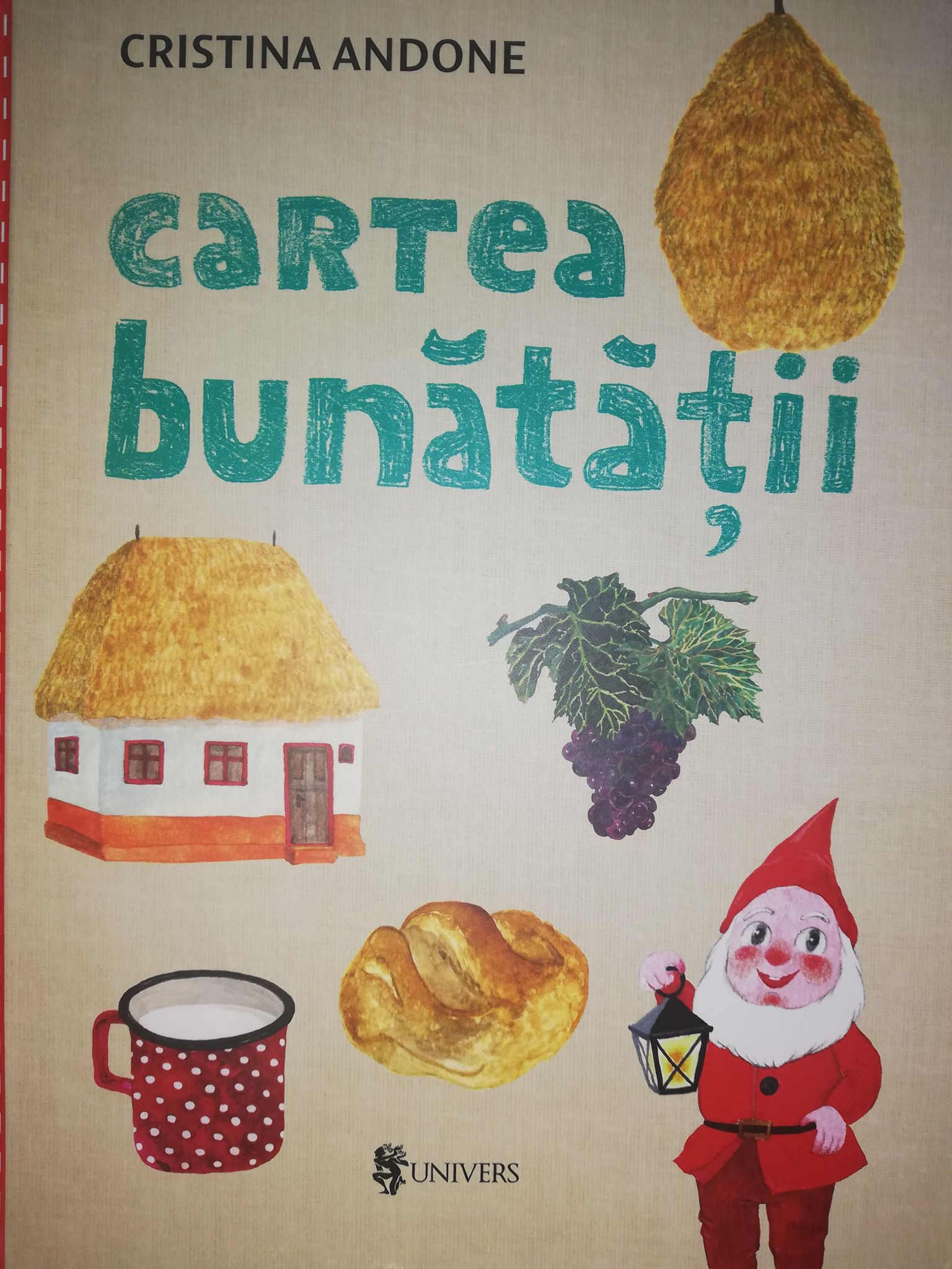 Cristina Andone: Eu sper că această carte va fi tămăduitoare mai ales pentru copii. Dar, pentru că a citi este și un act de bună complicitate între părinte și copil, eu visez la acele situații în care un părinte stă cu copilul seara, îi citește „Cartea bunătății” și împreună se luminează. Și își dau seama împreună că familia este o poveste pe care noi o putem alege să fie bună, să fie o poveste de alin și de răsfăț sau să fie o poveste tensionată, cu nemulțumire, cu greu, cu duritate. Noi ne facem povestea, mai întâi în familie, apoi în comunitate, apoi în țară. Și a fi bun cu natura este din ce în ce mai important. Eu cred că întotdeauna bunătatea începe cu tine, cu noi. Trebuie să fii bun cu tine, să nu te judeci mereu, să nu simți rușinea aceea care te paralizează. Să fii bun cu tine, cu familia ta, cu societatea, cu țara, cu natura. O bunătate în cercuri. Dacă toate aceste cercuri ar fi de bunătate, nu de rugină, nu de dispreț, nu de duritate, ne-am deschide. Cercurile acestea ne-ar ajuta să creștem cât de mult putem noi. Nu ne-am simți prizonieri în niște cercuri de oțel. Spun mulți oameni: Of, dacă m-aș fi născut în alt loc, în altă țară…Nu! Hai să facem noi cercul acesta minunat, hai să facem noi comunitatea să ne ajute și noi să ne ajutăm comunitatea. Cred că această carte este un prim pas. Nu cred în miracole, desigur. Dar cred în răbdare, cred că avem nevoie de mai mulți pași în sensul acesta, de mai mulți scriitori, de mai multe cărți vindecătoare. Sper că acei 3500 de copii care vor primi această carte cadou (de la o firmă de cereale chiar din județul Constanța) să se regăsească, să se bucure, să simtă că grăunțele lor de bunătate au rodit, iată, s-au transformat într-o carte. Cele câteva rânduri pe care ei mi le-au trimis s-au transformat într-o poveste pe care Editura Univers a considerat că merită să fie publicată.