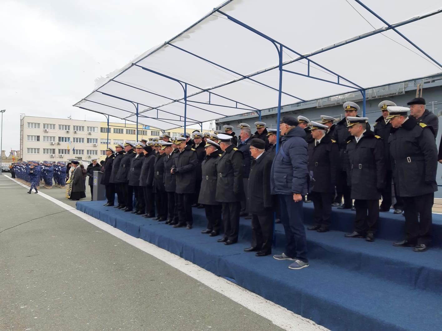 La ceremonia de plecare în misiune, din în portul militar Constanța, sunt prezente oficialități militare și civile, precum și familiile militarilor care vor pleca în cea mai lungă misiune a Forțelor Navale Române.