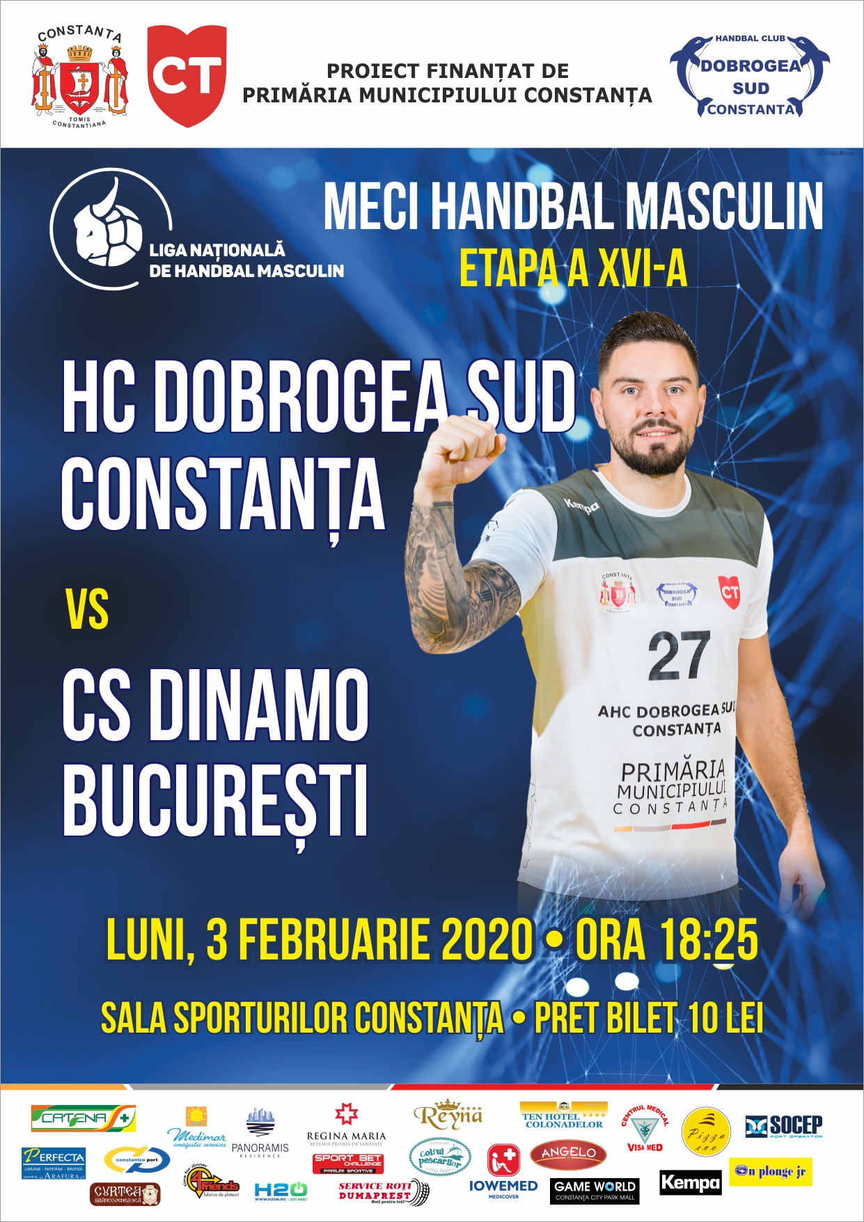 Sala Sporturilor din Constanța va găzdui luni, 03 februarie 2020, începând cu ora 18:25, meciul de handbal dintre HC Dobrogea Sud Constanța și CS Dinamo București, în cadrul Ligii Naționale de Handbal.