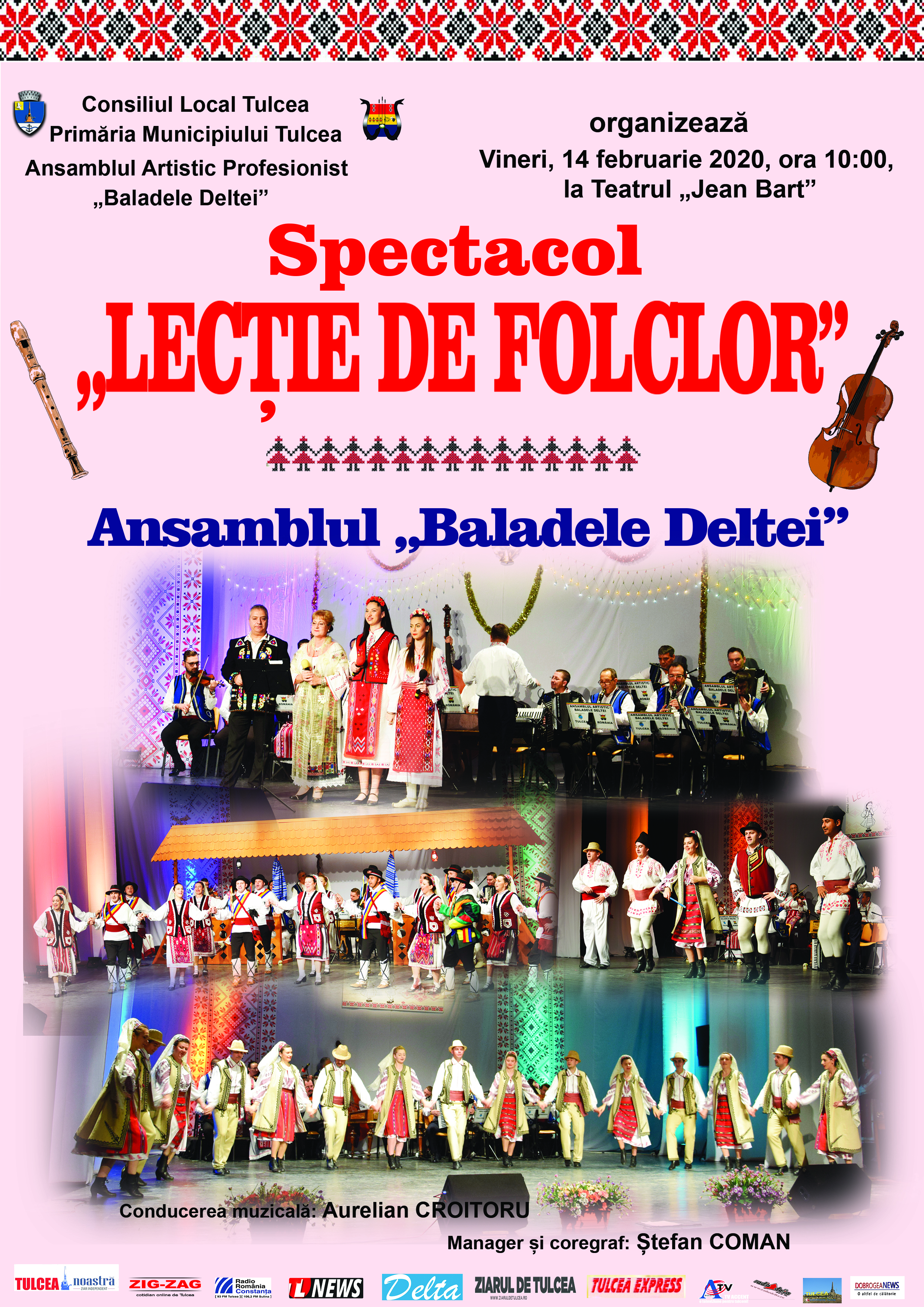 Ansamblul Artistic Profesionist „Baladele Deltei” organizează vineri, 14 februarie 2020, primul Spectacol „Lecție de folclor” din acest an.