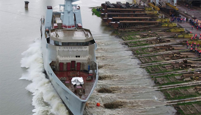 O navă de patrulare (echivalentul corvetei) construită de muncitori români, în România, este a fost livrată astăzi. Este vorba de Offshore Patrol Vessel 1900 – „PNS YARMOOK“ – navă construită de Şantierul Naval Damen Galaţi pentru Ministerul Apărării/Marina Militară din Pakistan.