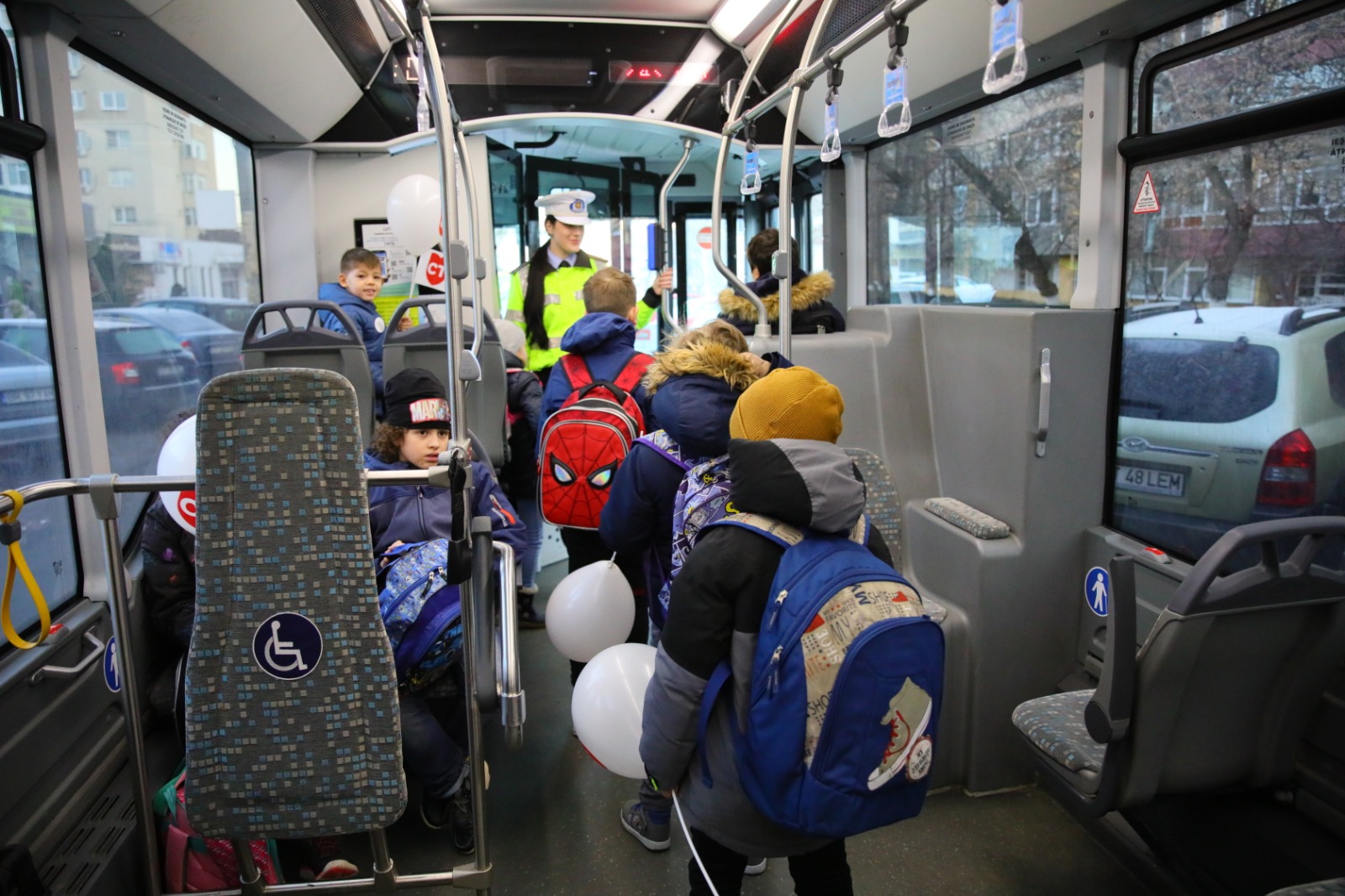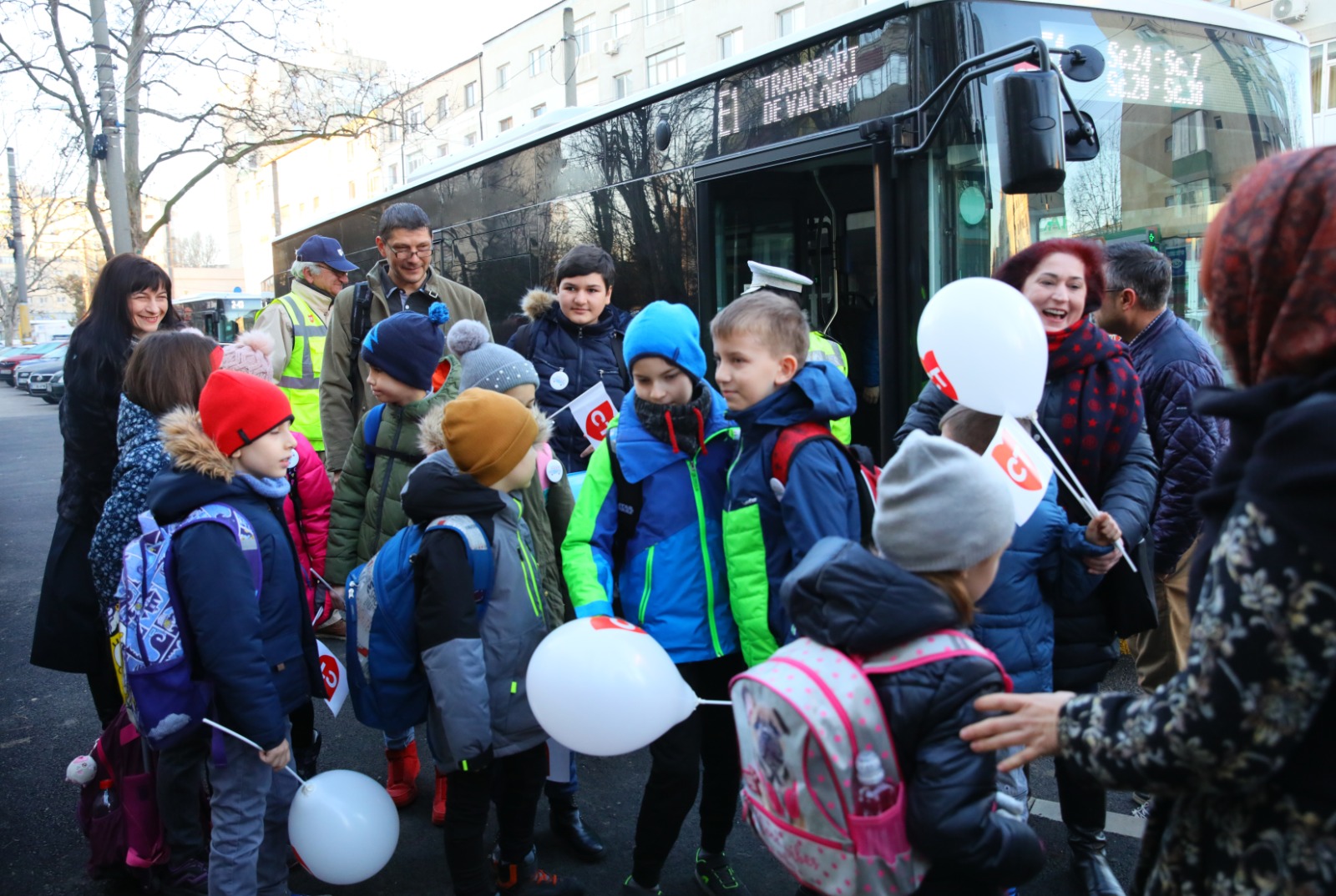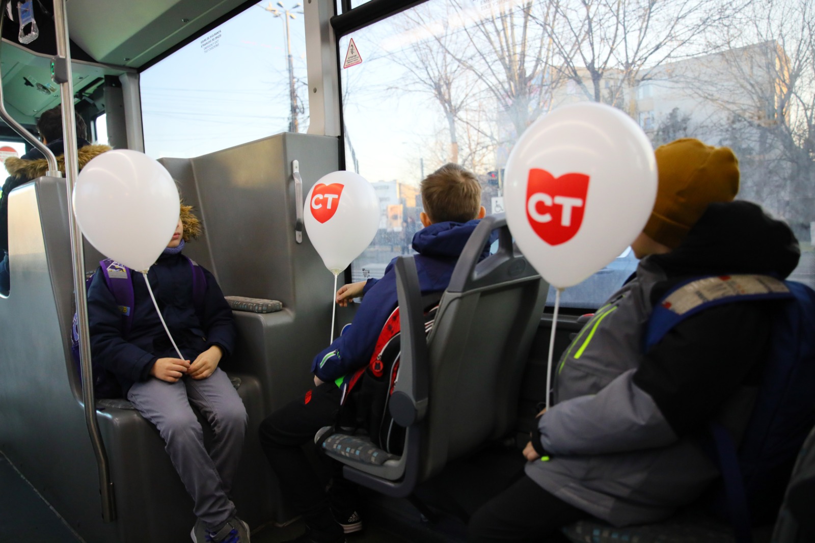 Zeci de copii au mers în această dimineață cu autobuzele școlare la unitățile de învățământ. Aceștia au fost întâmpinați de reprezentanții CT BUS și ai Poliției Locale cu baloane, stegulețe, pixuri și insigne cu însemnele orașului Constanța.