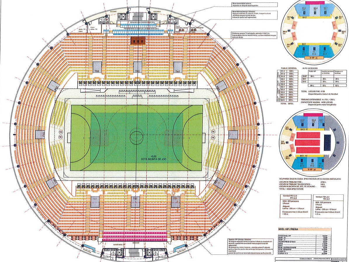 Astfel, vom avea un teren principal de competiții, înconjurat de tribune pentru spectatori și un teren de antrenament, situat în subsolul clădirii, sub amprenta terenului principal, ambele terenuri având o suprafață de joc pentru handbal la dimensiuni oficiale (20x40m), parcare subterană, iar capacitatea tribunelor va crește la 4.438 de locuri“, a declarat președintele Consiliului Județean Tulcea, Horia Teodorescu.