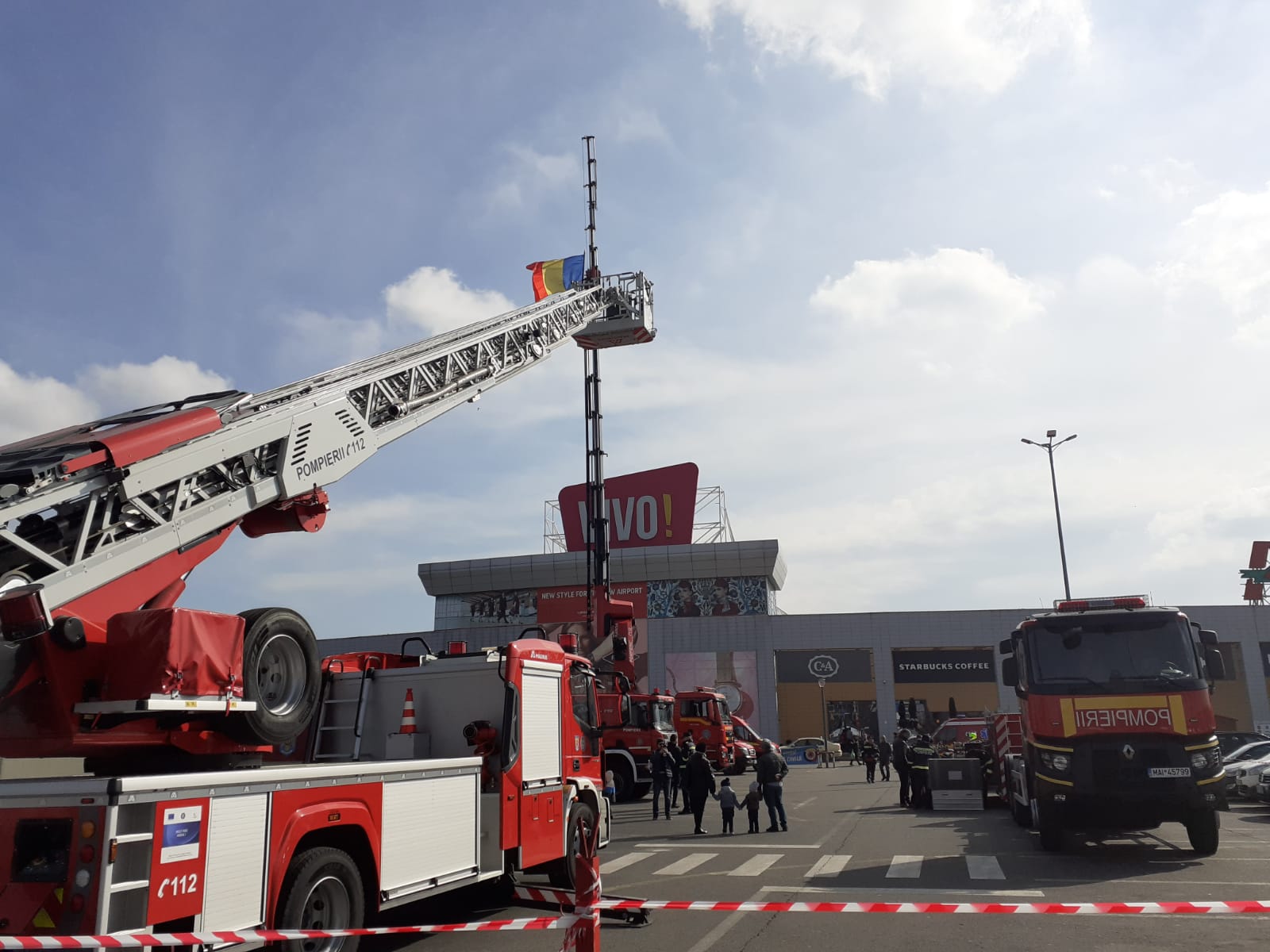 Au răsunat sirenele, ieri, în parcarea mall-ului de pe bulevardul Aurel Vlaicu. Ziua Protecției Civile a fost marcată printr-o expoziție de tehnică și armament.