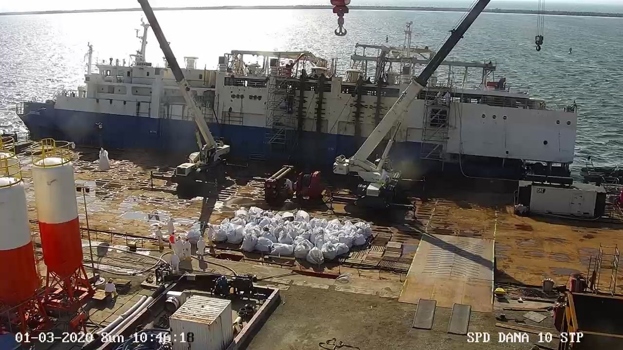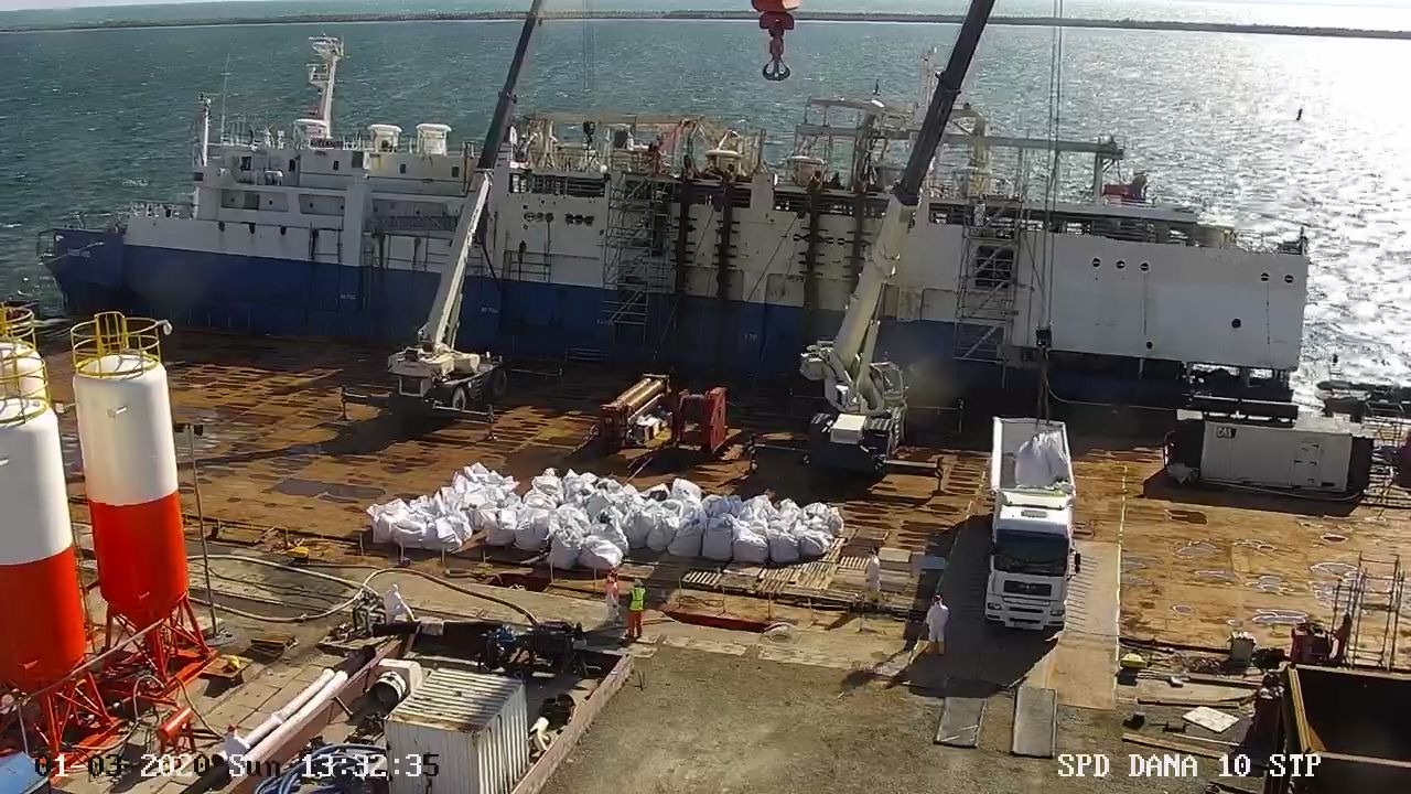 În Portul Midia, Grup Servicii Petroliere (GSP) lucrează pentru descărcarea în siguranță a navei Queen Hind de încărcătura biologică ce este transportată către incinerator. Potrivit reprezentanților companiei, nu există cadavre din încărcătura navei în apele portului, iar analizele făcute de experții în sănătate publică arată că apa din zonă este curată.