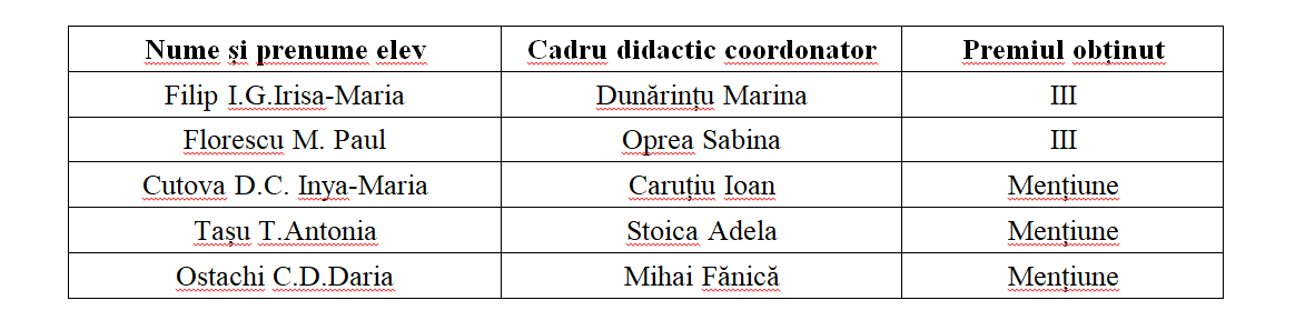 În anul școlar 2019 – 2020, 5 elevi de la Colegiul Național de Arte „Regina Maria”, din Constanța au obținut premii la Olimpiada Națională de Interpretare Instrumentală pentru clasele III – VIII, derulată la București, după cum urmează: