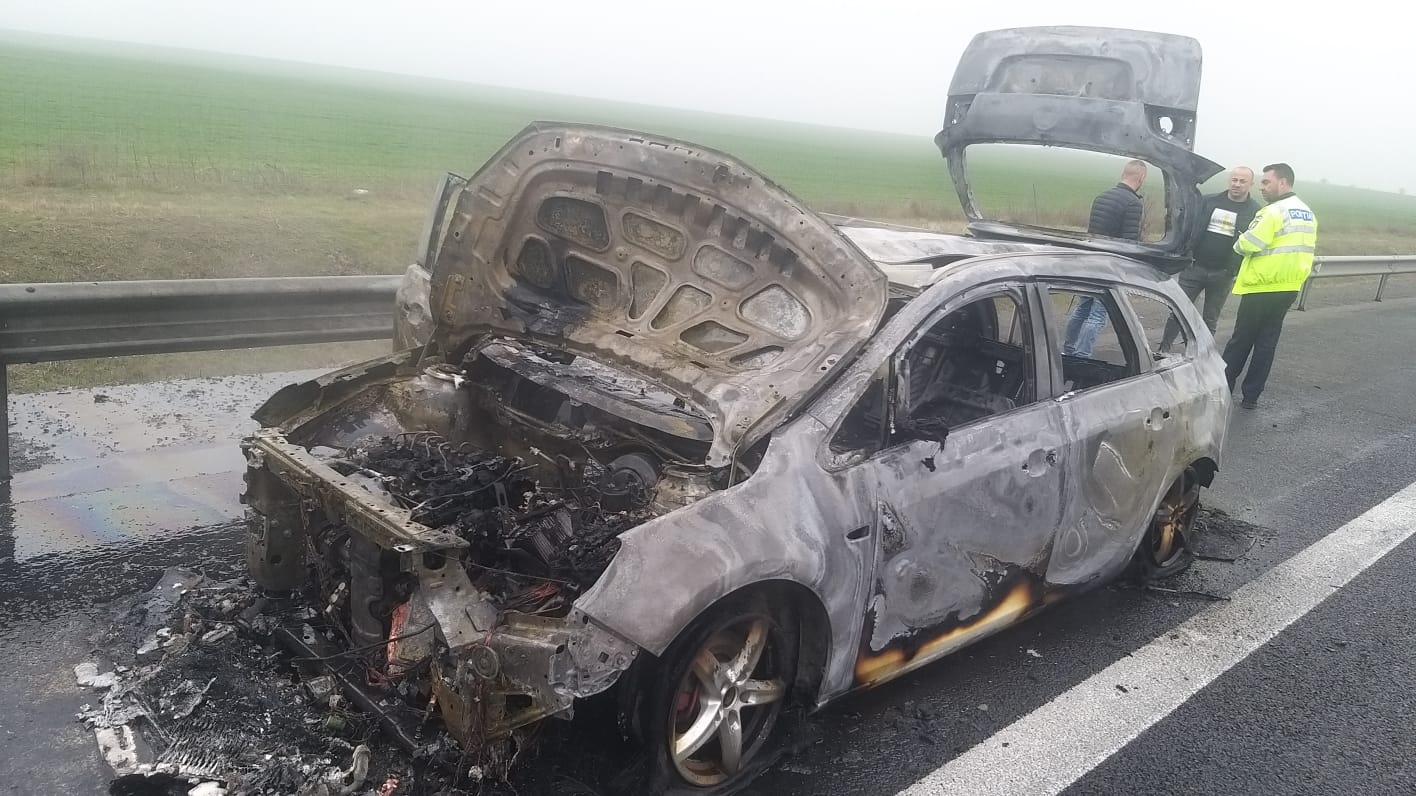 O mașină a fost cuprinsă de flăcări, în aceatsă dimineață, pe Autostrada Soarelui. Au intervenit nouă pompieri cu o autospecială de stingere și o ambulanță SMURD B din cadrul Detașamentului Medgidia.