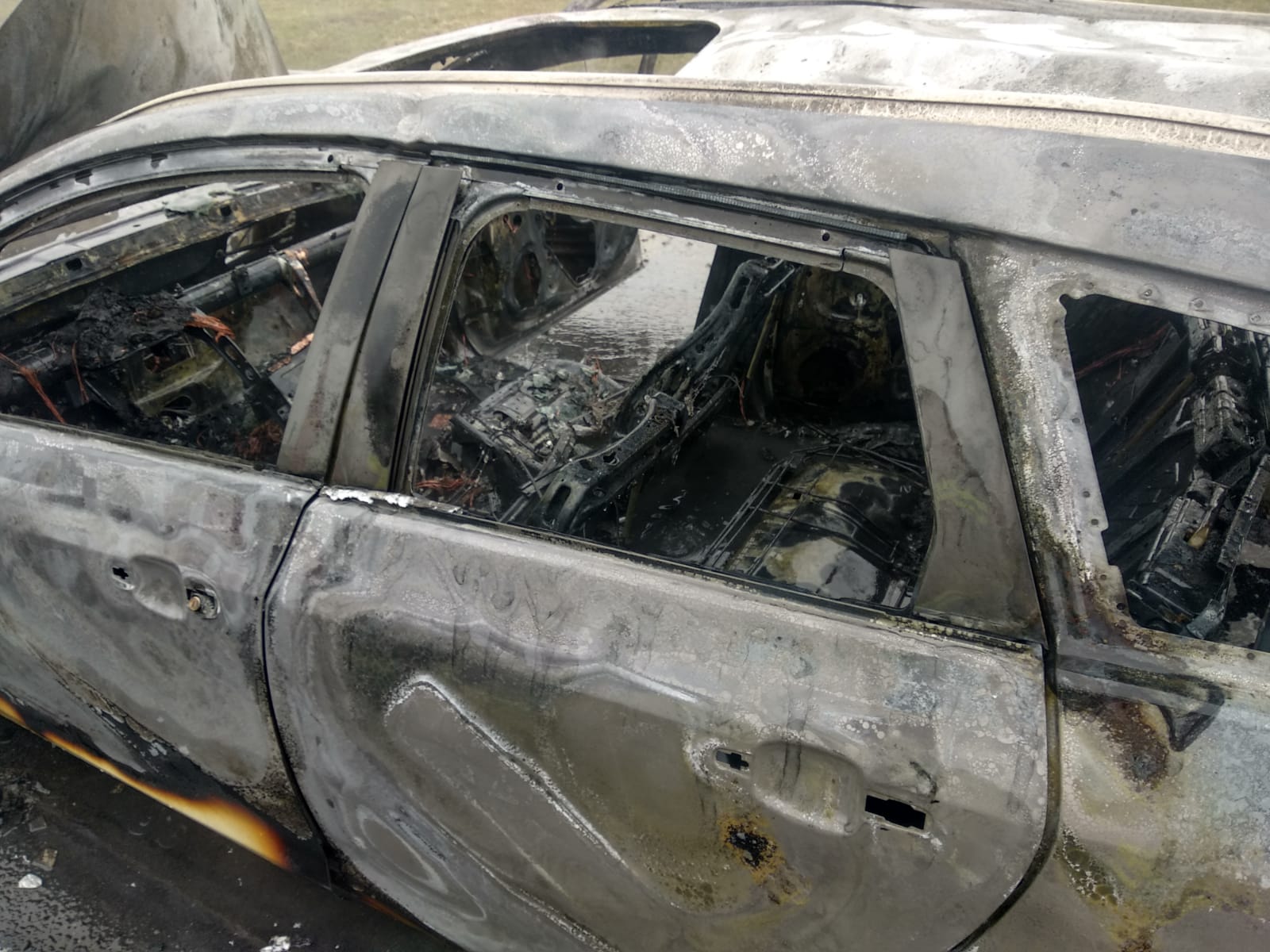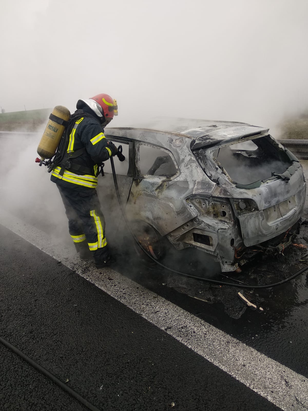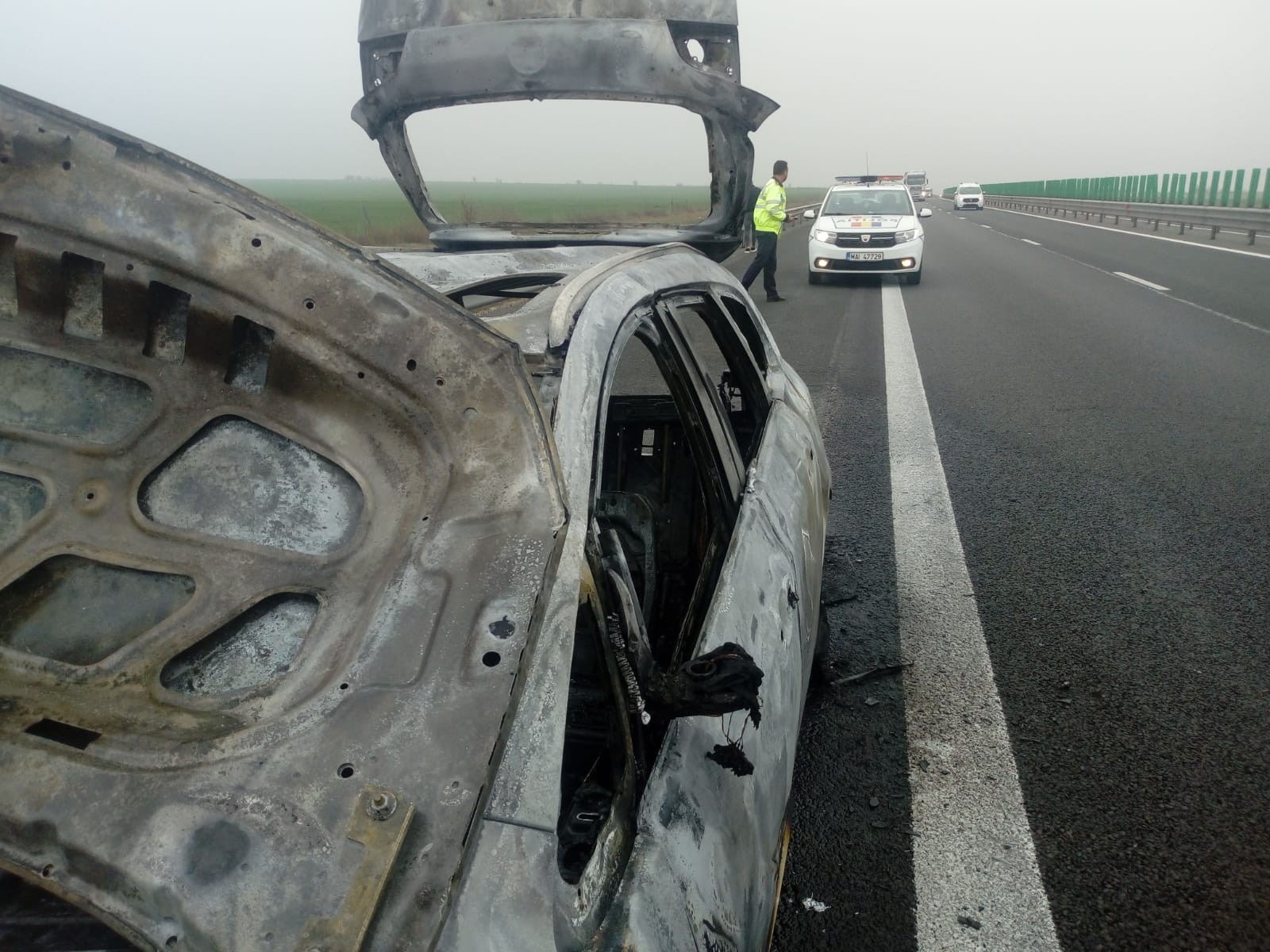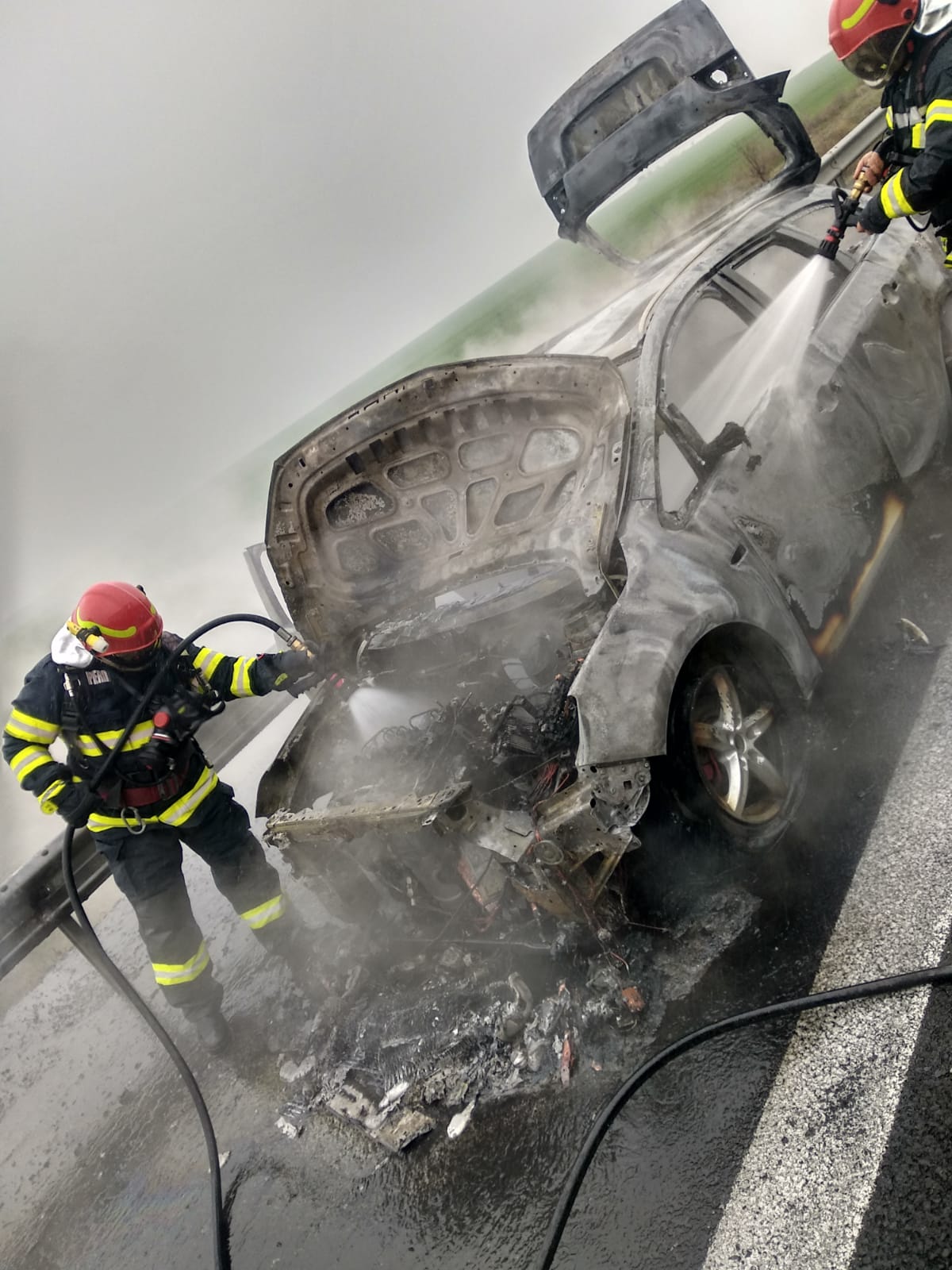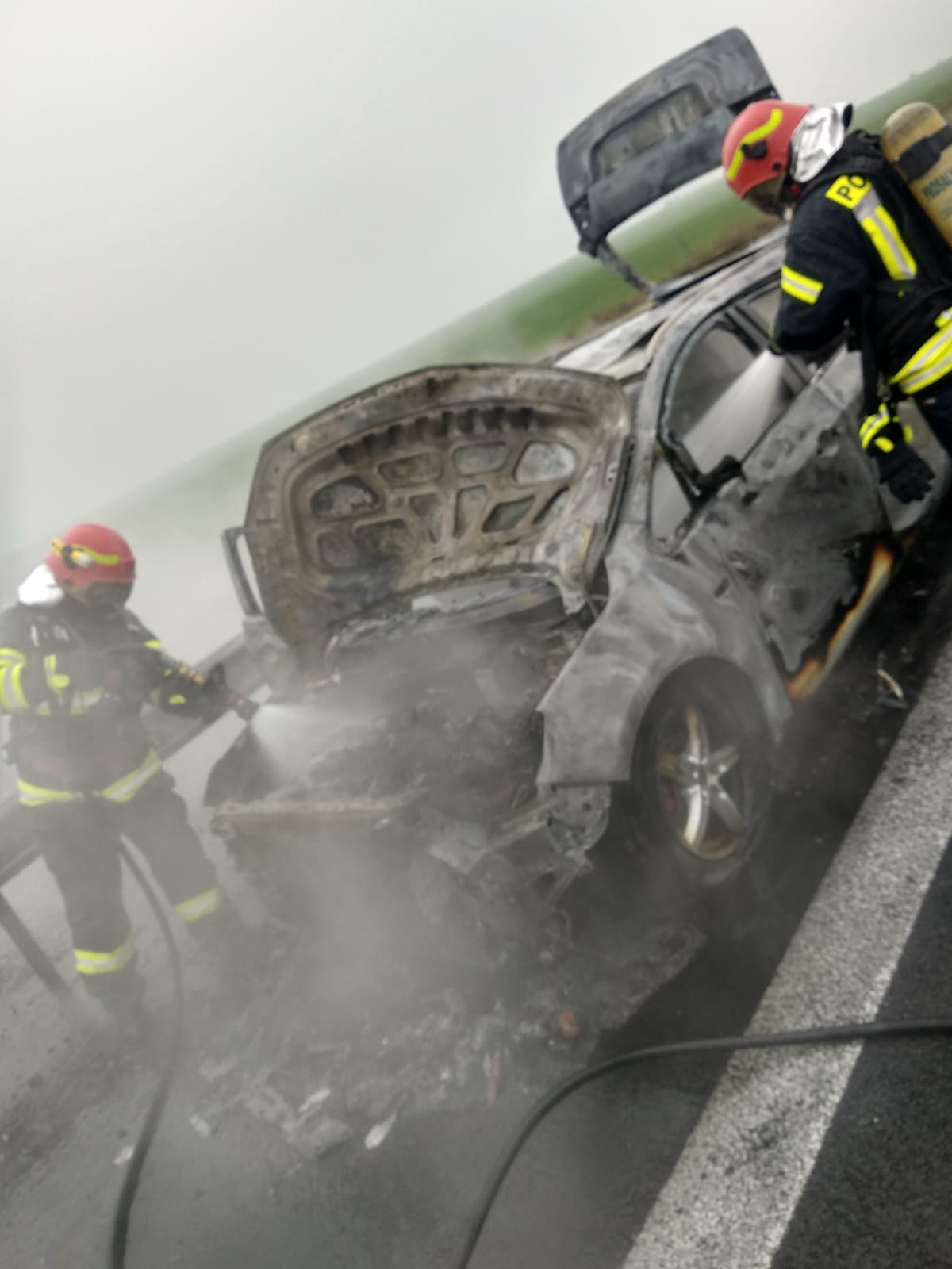 La sosirea echipajelor, incendiul se manifesta generalizat la întreg autoturismul.