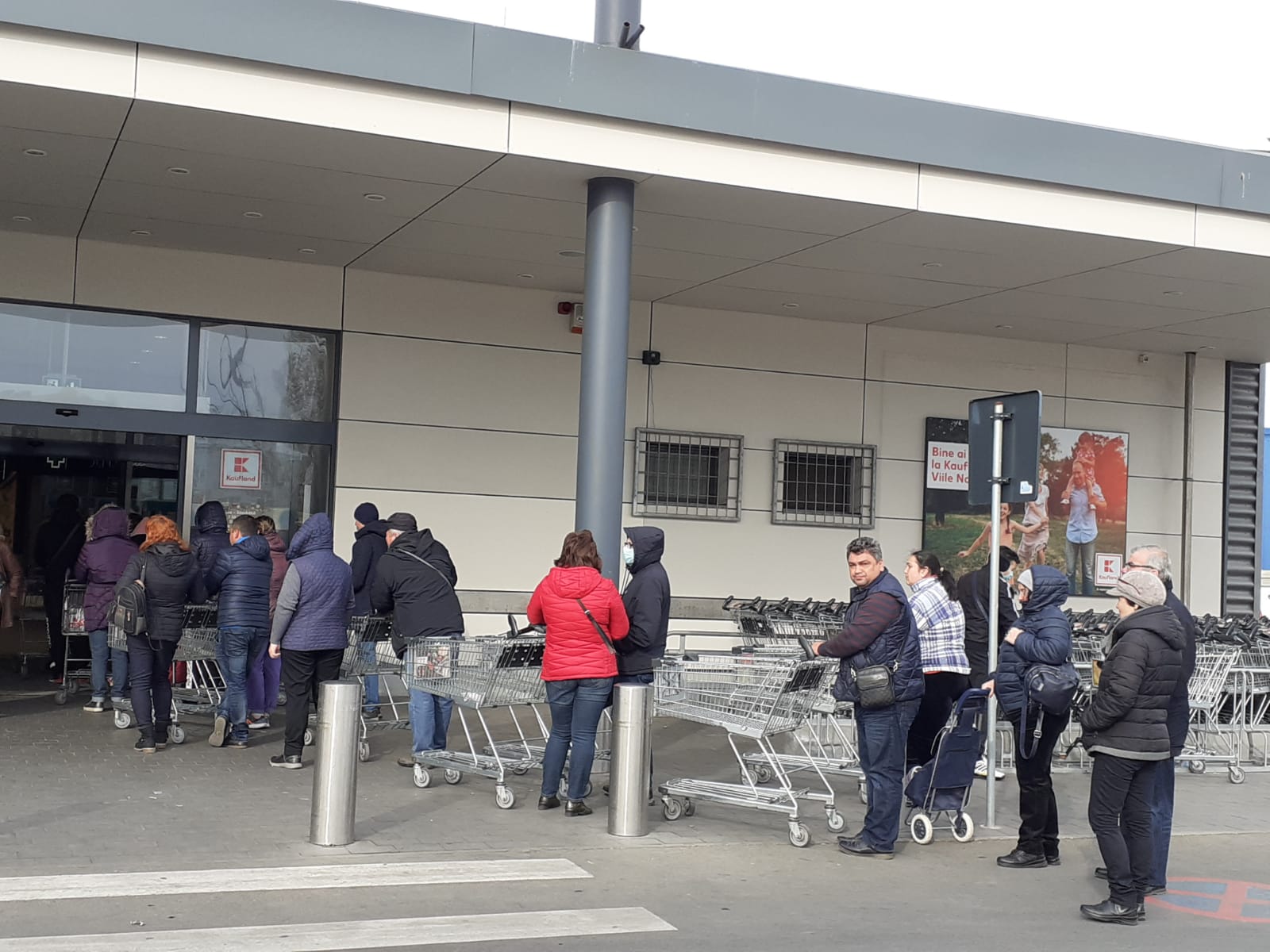 Unele supermarket-uri și hypermarket-uri au decis restricționarea accesului pentru clienți. Din această cauză, duminică după-amiaza, oamenii intrau în magazine în grupuri de mai multe persoane.