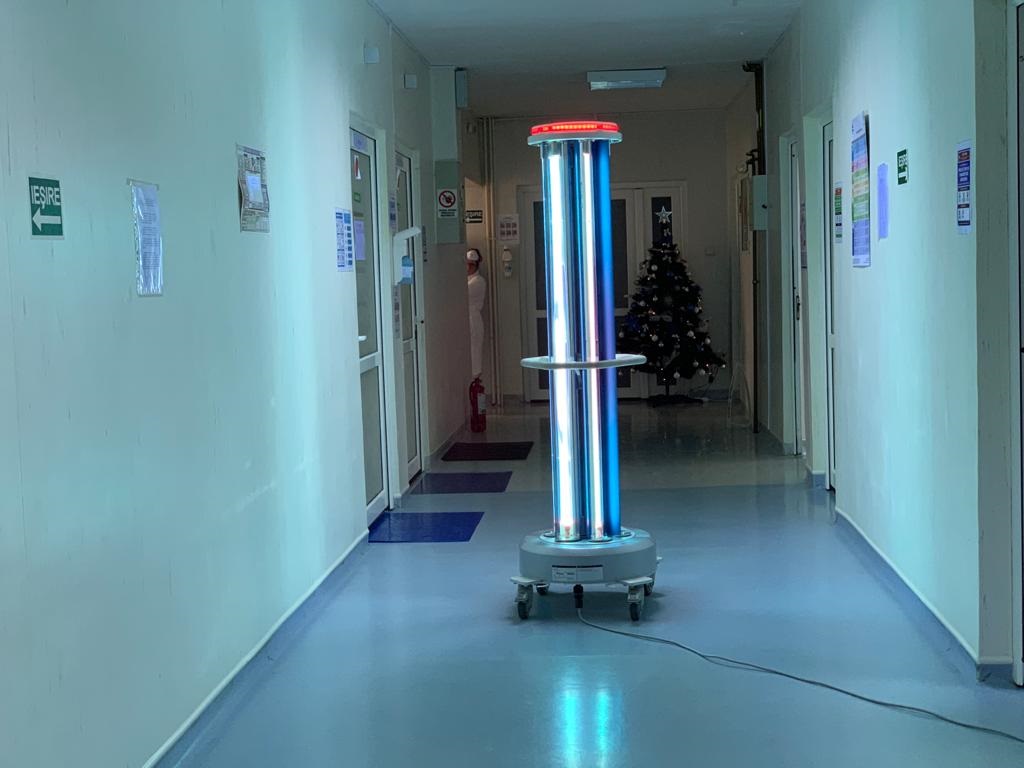 Tehnologia robotului de dezinfecție are o eficiență de peste 99% în distrugerea virușilor și bacteriilor. Aparatul acționează fără intervenție umană, poate fi programat să acționeze prin telecomandă pe anumite intervale de timp și este utilizat acum la capacitate maximă în saloanele în care se află bolnavi, pentru protecția personalului sanitar dar și a pacienților, mai anunță sursa citată.