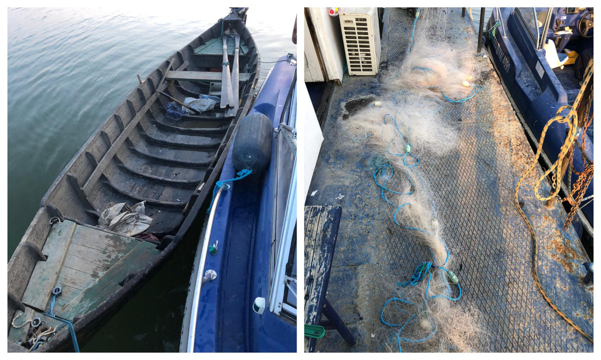În urma controlului efectuat, polițiștii de frontieră au descoperit în ambarcațiune două plase de pescuit în care se aflau 21 bucăți pește, din speciile scrumbie și plătică.