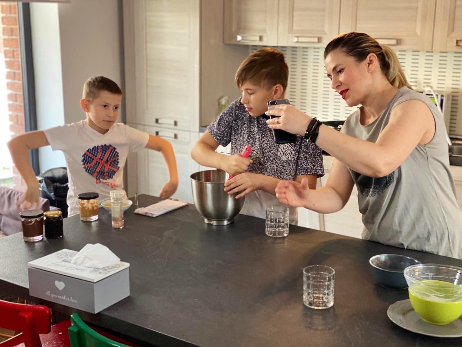 Diana Stîngă: Aceste ateliere sunt preferatele mele, au început acum mai bine de trei ani și sunt dedicate în special băieșilor mei, care se joacă și se distrează în bucătărie. E un alt mod de a petrece mai mult timp cu copilul. Sau de a-i fura din fața tabletei sau a televizorului. Iar acum, pentru că nu ne mai putem întâlni (avem deja o gașcă de copii care participă foarte des), am mutat aceste ateliere în online. Și dacă la început le-am moderat eu, după aceea băieții mei au preluat ei inițiativa și se descurcă de minune. Ne place interacțiunea cu copiii, care ne trimit după aceea pozele cu produsele pe care le fac și ei acasă. Copiii dar și părinții lor sunt foarte încântați. Într-adevăr, nu este același lucru ca atunci când atelierele sunt live, dar este o variantă.