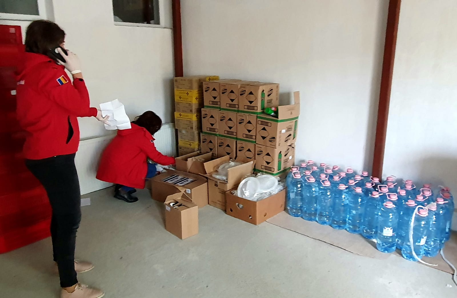 Este vorba despre 240 litri de apă plată (40 bidoane x 6 litri), 30 rezervoare pliabile pentru apă, 300 de recipiente de 1 litru de dezinfectant suprafeţe, 50 litri dezinfectant mâini, 1000 de perechi mănuși de unică folosință, 270 de bucăţi săpun, 150 de pachete șervețele umede, dar și 100 de pachete cu alimente de bază.