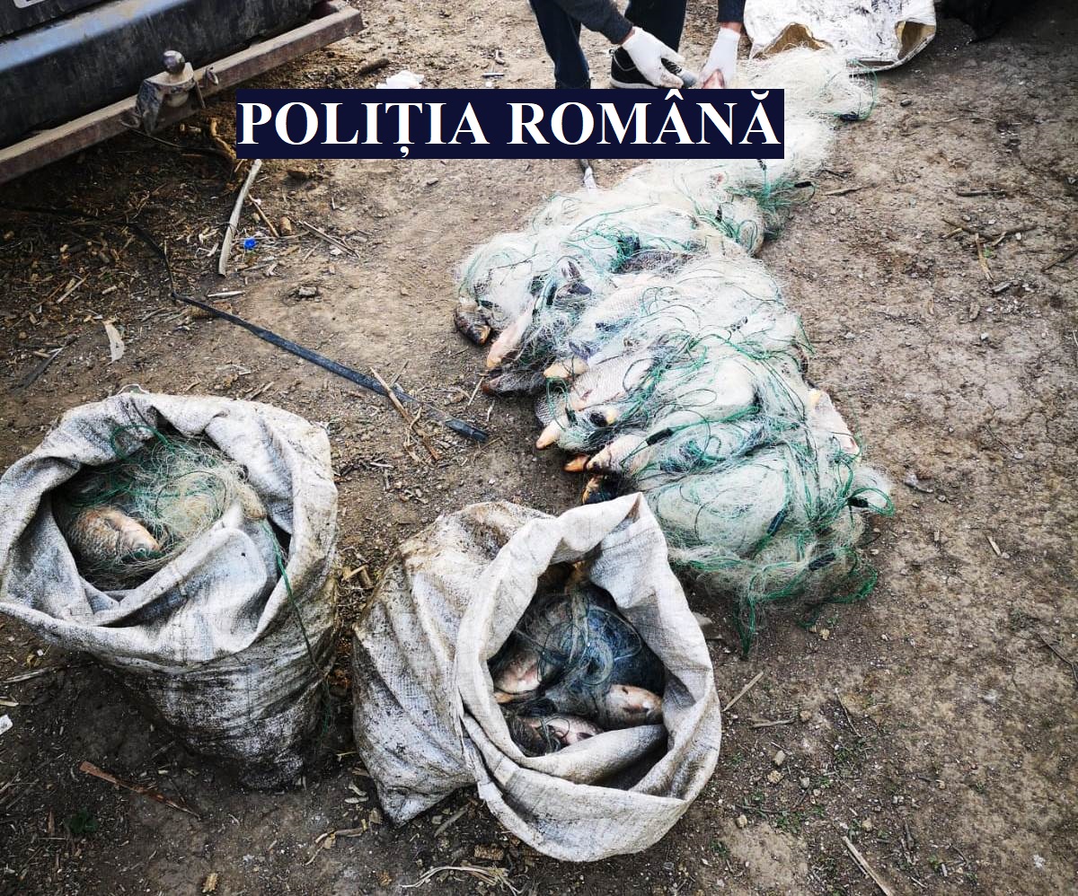 „Cu ocazia descinderilor, au fost ridicate în vederea indisponibilizării 2 motoare de barcă, 10 plase monofilament, în lungime totală de 900 de metri, o barcă gonflabilă din cauciuc cu vâsle, 139 de kilograme de pește de diferite specii, valoarea totală a bunurilor ridicate fiind de aproximativ 21.700 de lei. În urma administrării probatoriului în cauză, 2 persoane au fost conduse la sediu pentru audieri, în cauză efectuându-se cercetări și sub aspectul săvârșirii de infracțiuni prevăzute de art. 64 și art. 65 din O.U.G. 23/2008”, au declarat surse din Poliție.